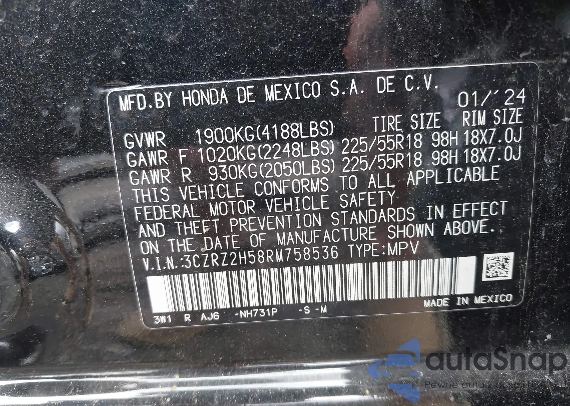 • VIN 1HGCV1F34NA122000