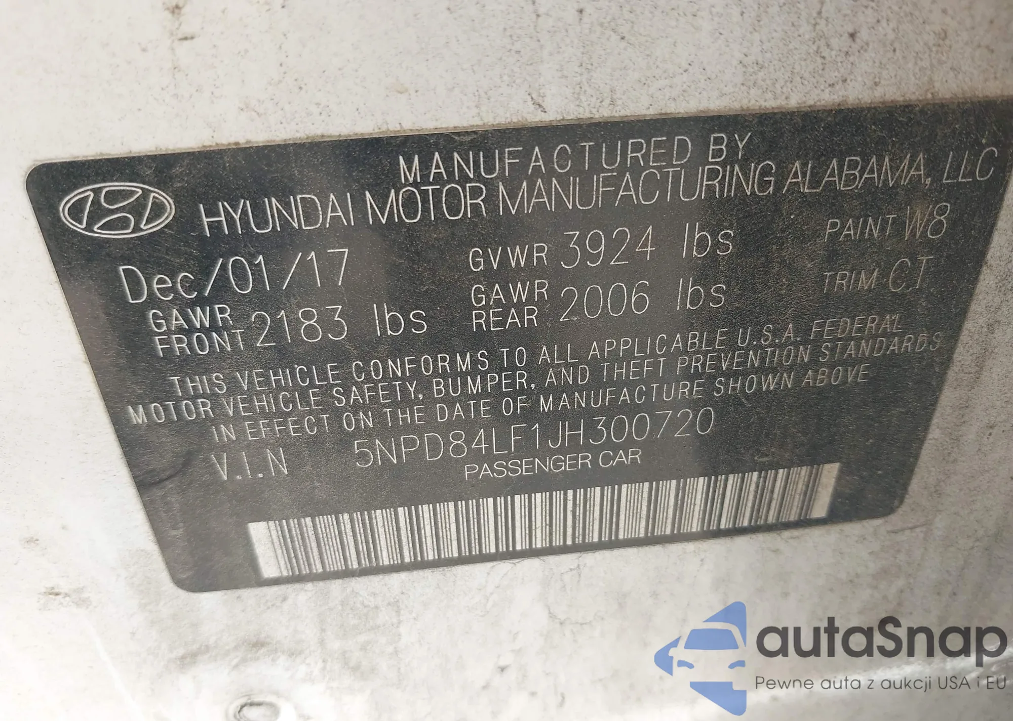 LOT: 42040158 VIN: 5NPD84LF1JH300720