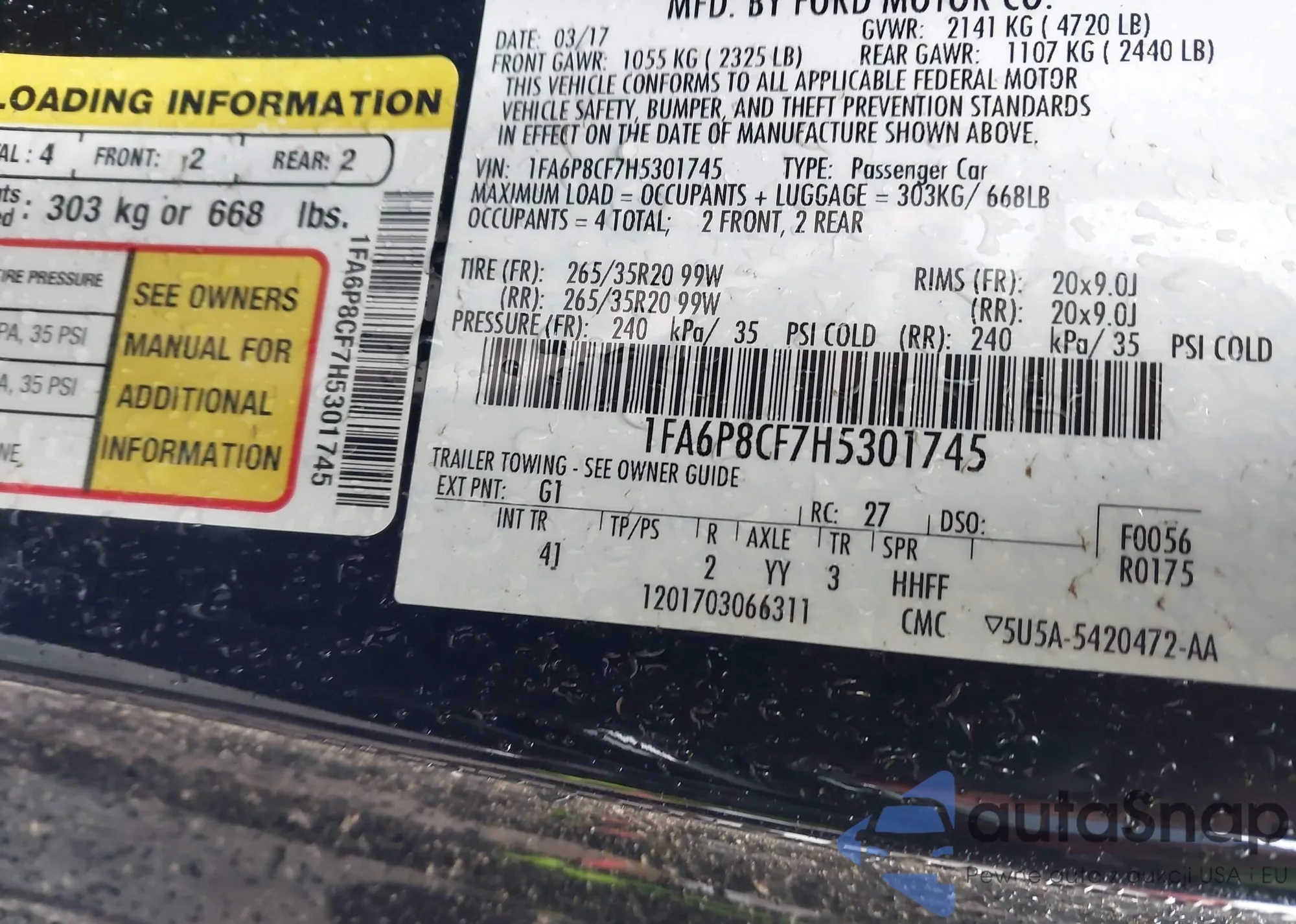 • VIN 1FA6P8CF7H5301745