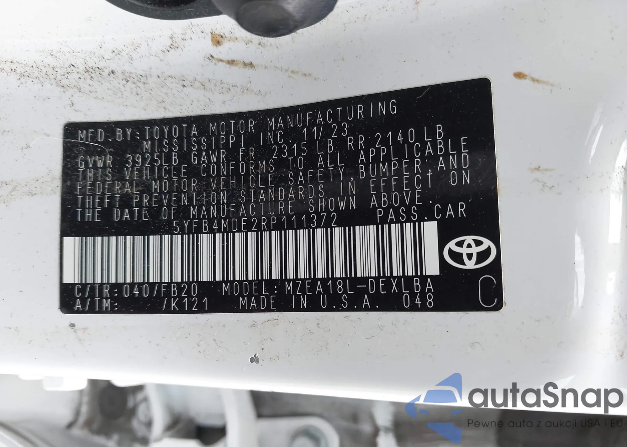 • VIN 5YFB4MDE2RP111372