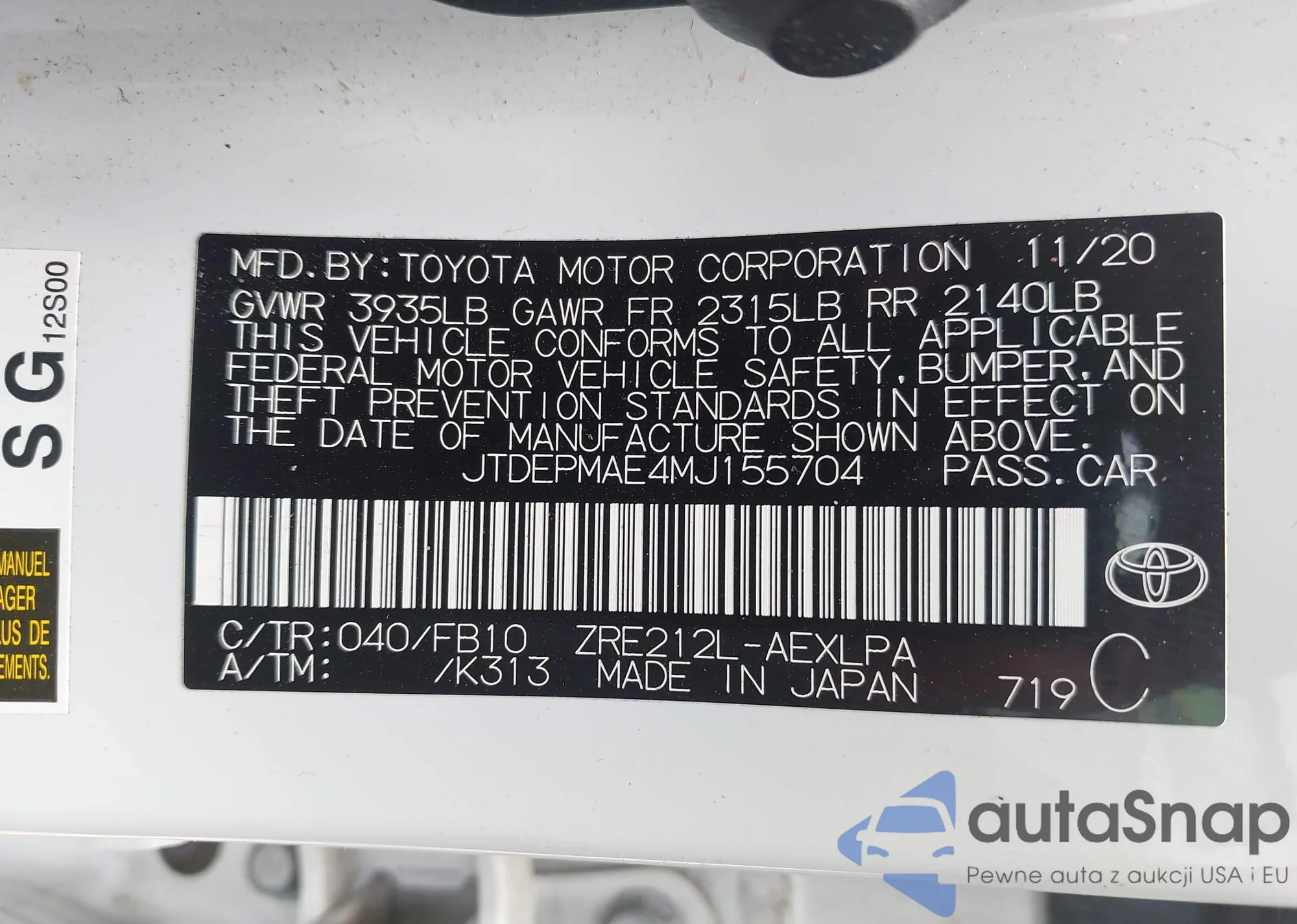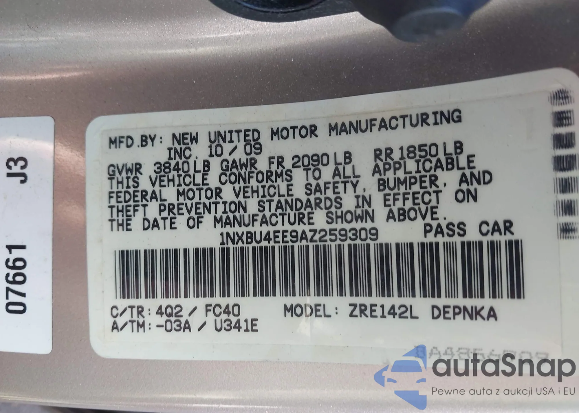 • VIN 1NXBU4EE9AZ259309