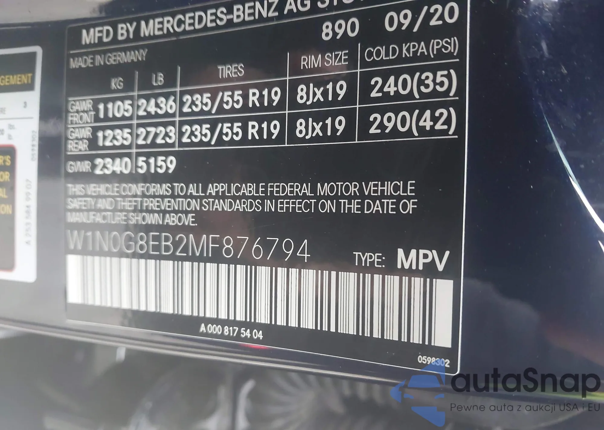 • VIN W1N0G8EB2MF876794