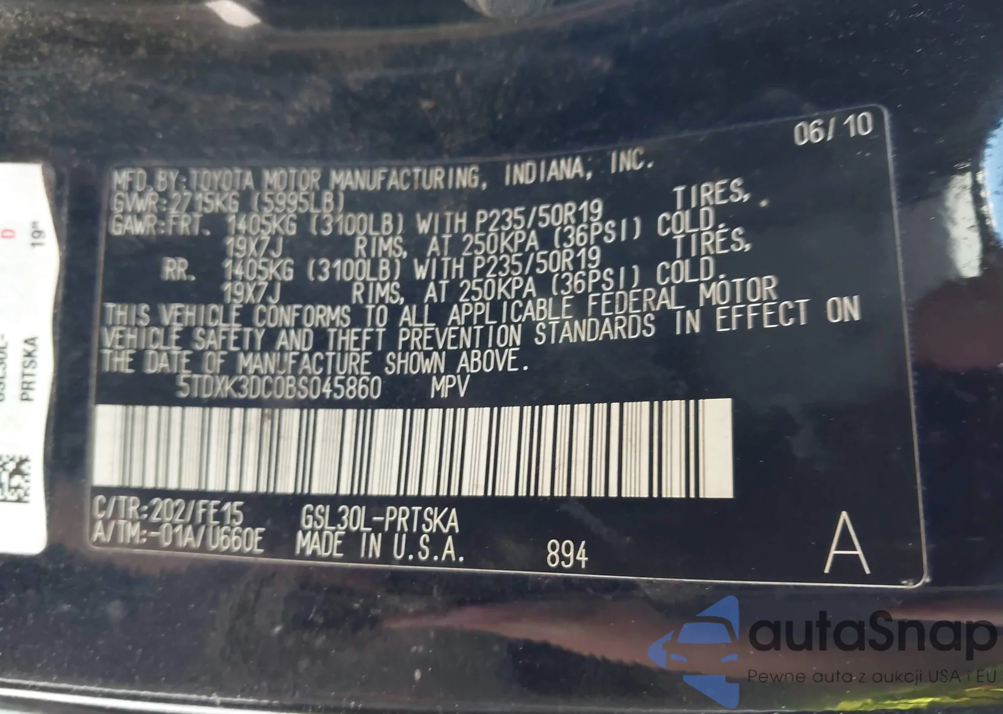 • VIN 5TDXK3DC0BS045860