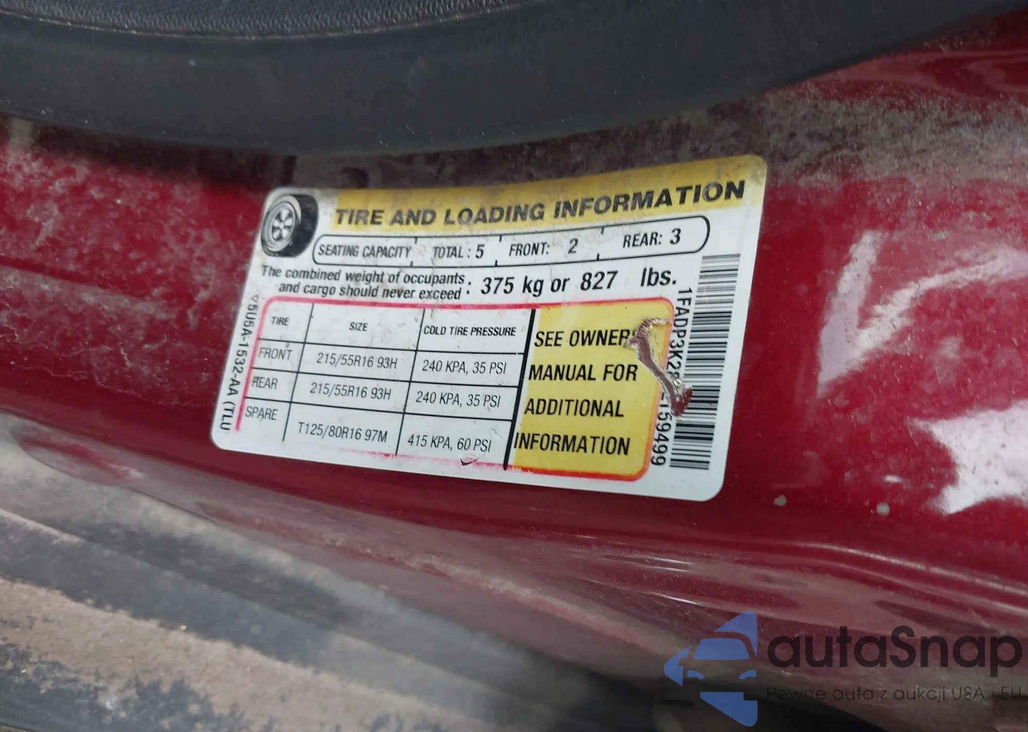 • VIN 1FADP3K28EL159499
