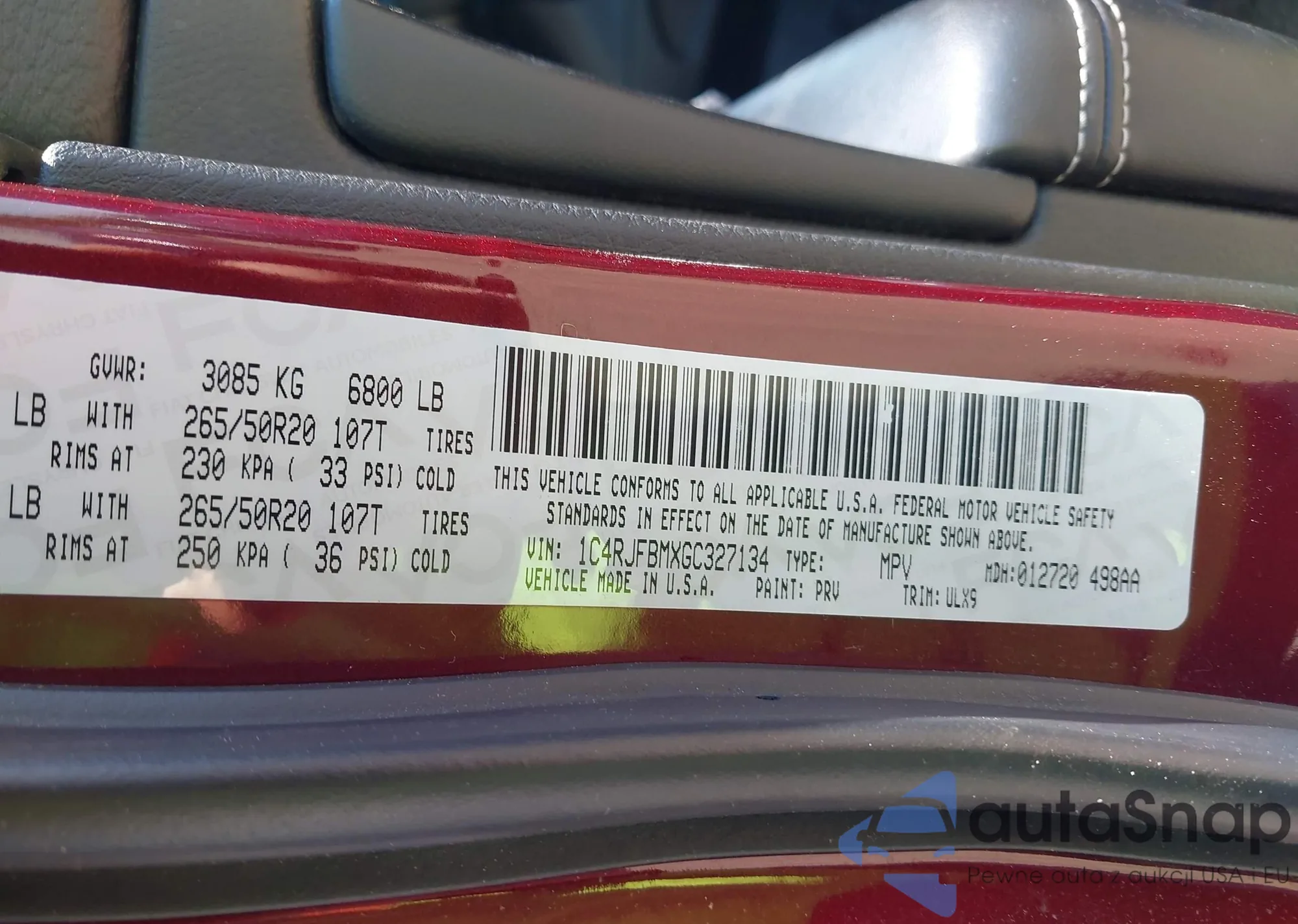 • VIN 1C4RJFBMXGC327134