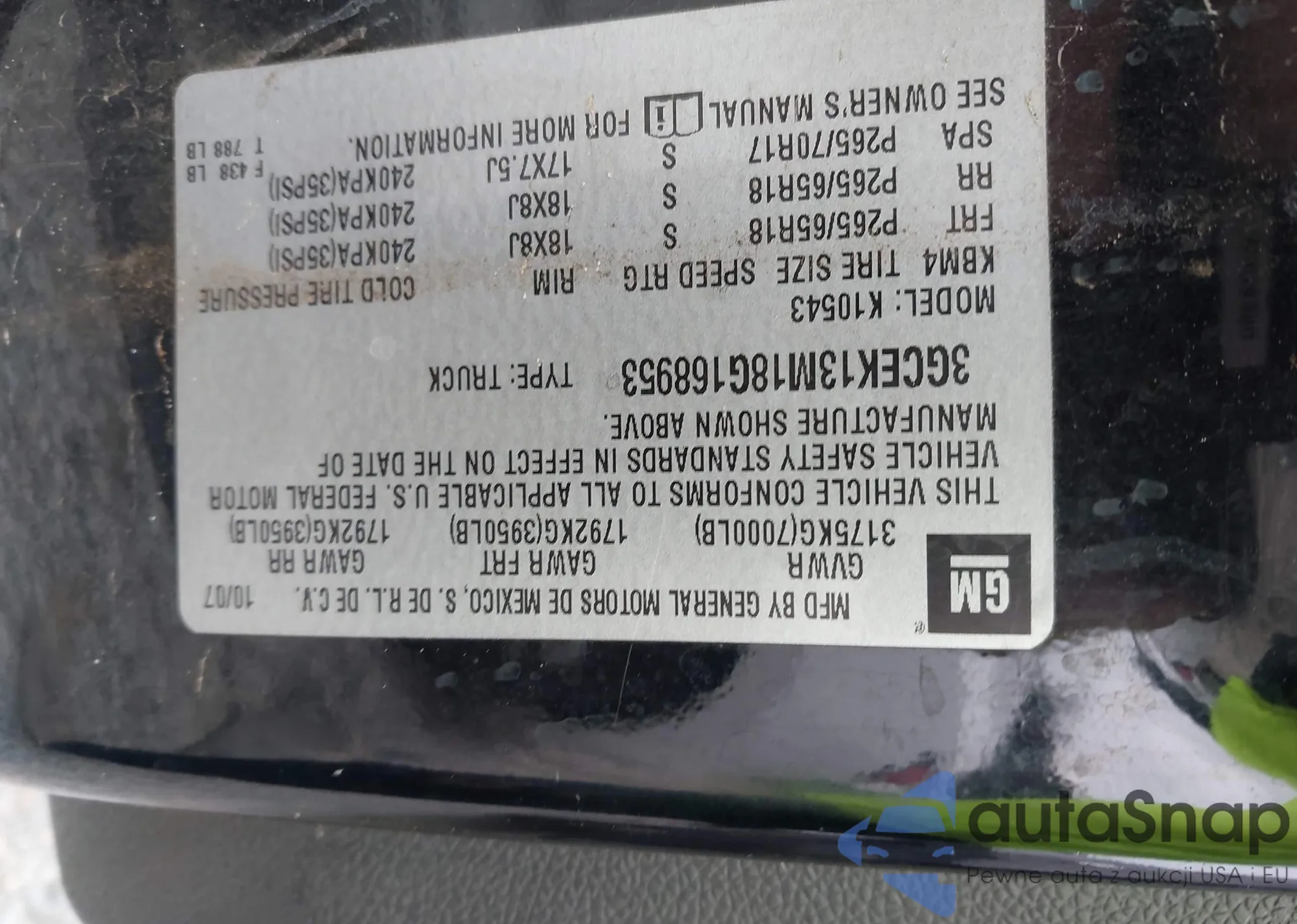 • VIN 3GCEK13M18G168953