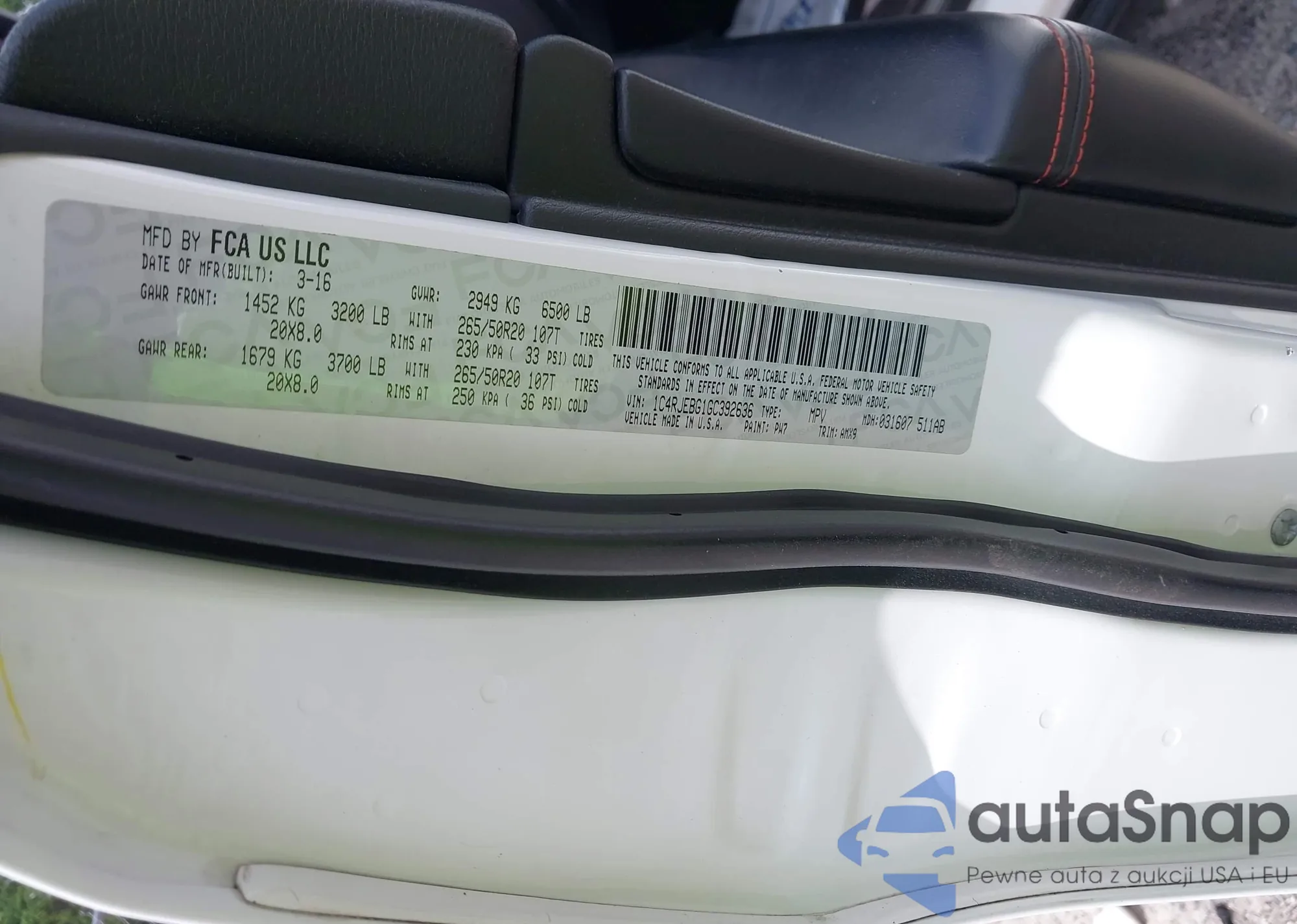 LOT: 42531197 VIN: 1C4RJEBG1GC392636