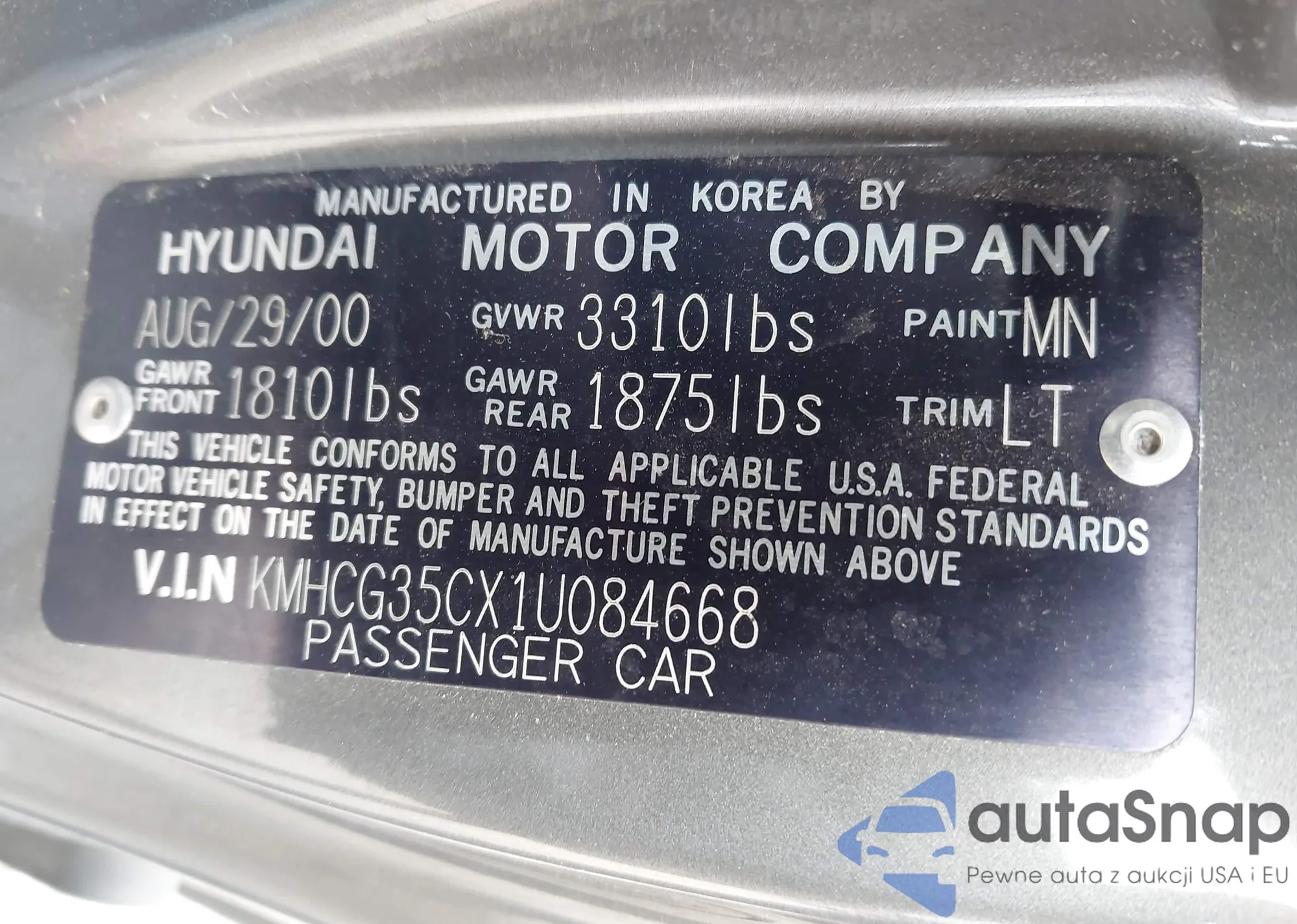 • VIN KMHCG35CX1U084668