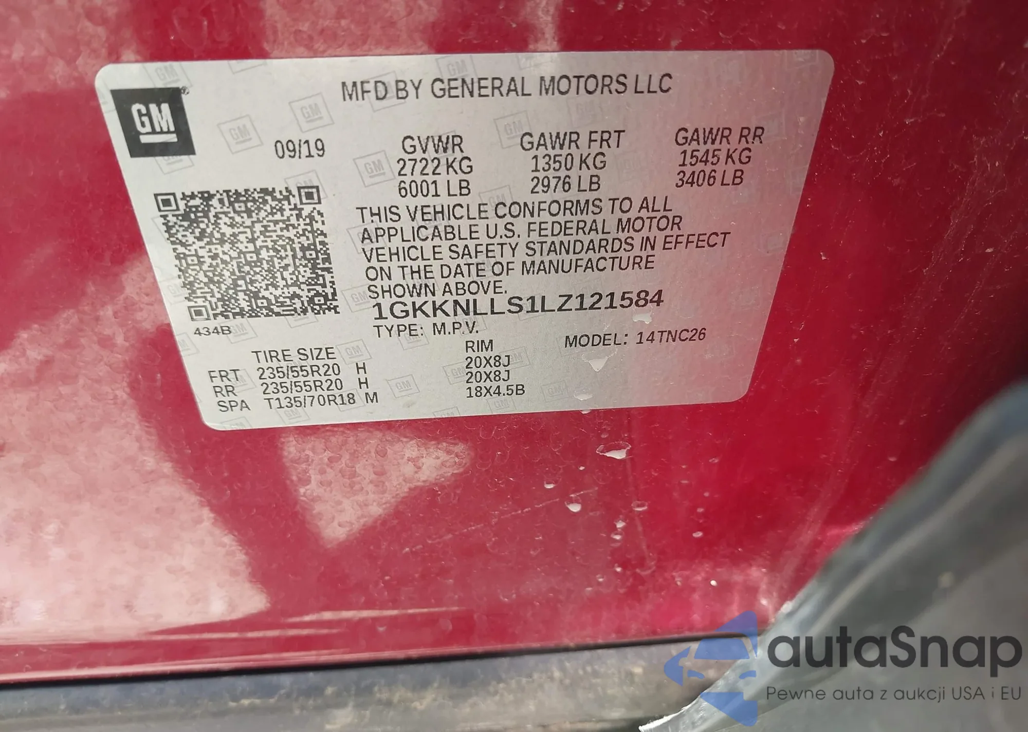 LOT: 42566521 VIN: 1GKKNLLS1LZ121584
