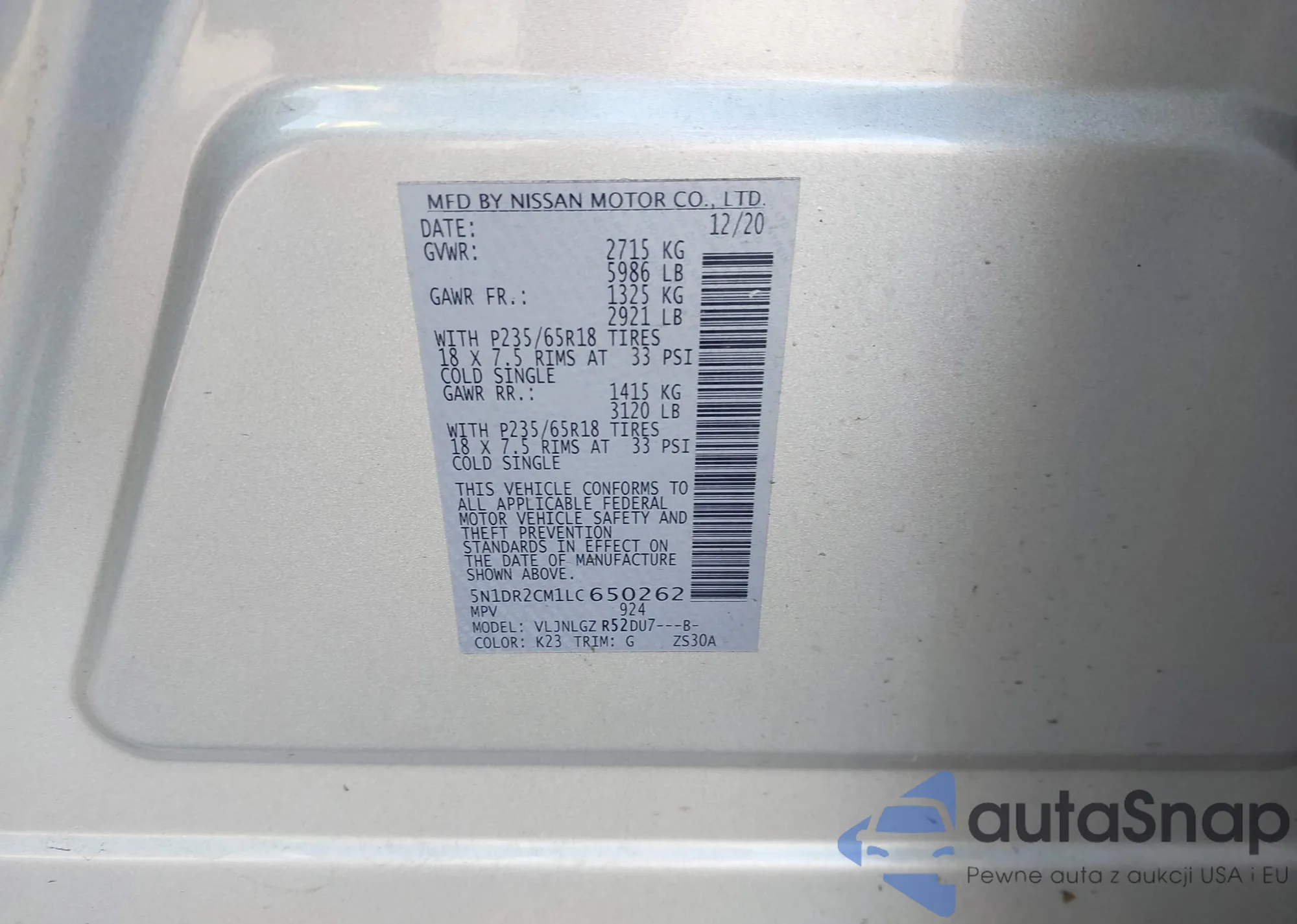 • VIN 5N1DR2CM1LC650262