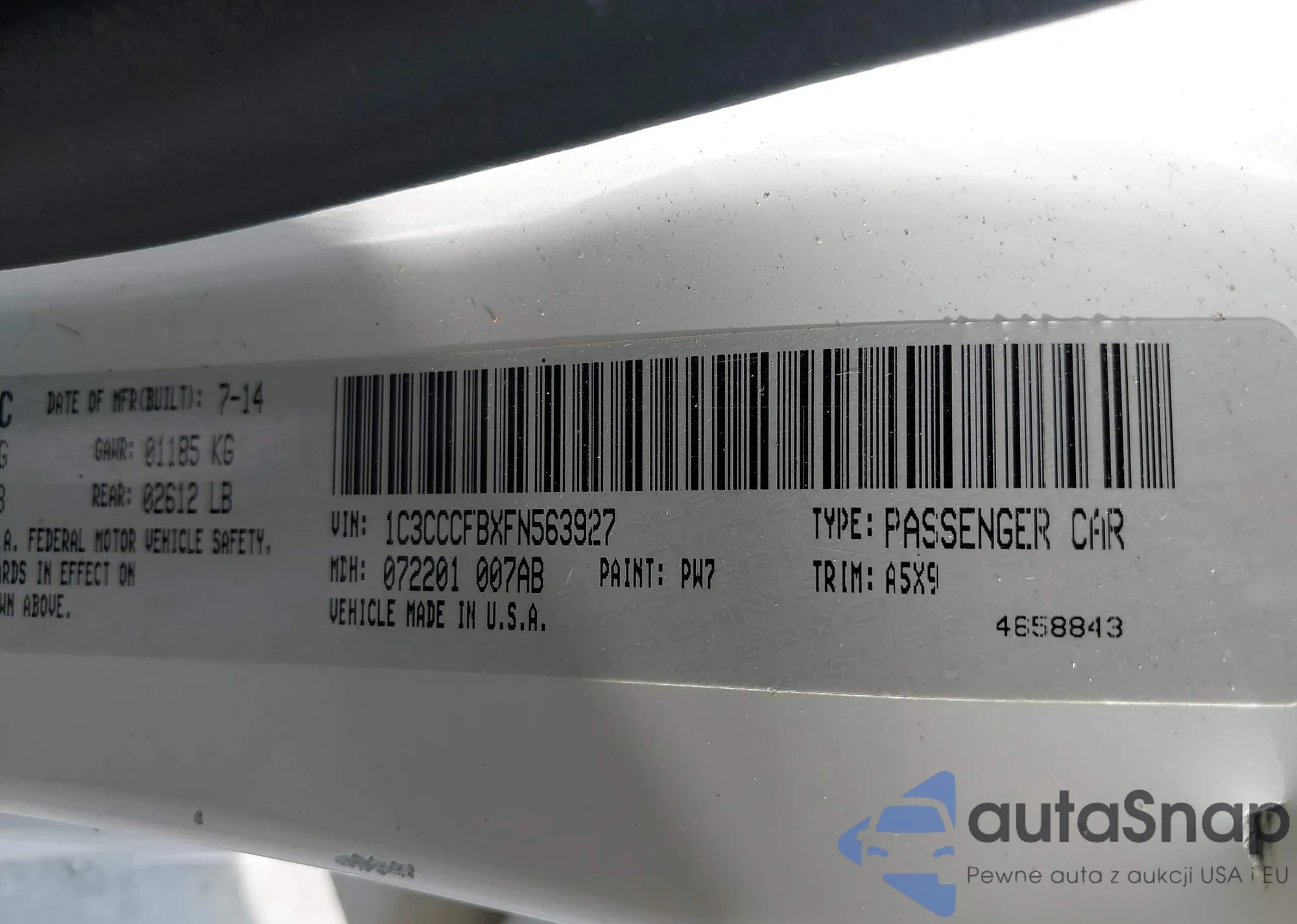 LOT: 42797997 VIN: 1C3CCCFBXFN563927