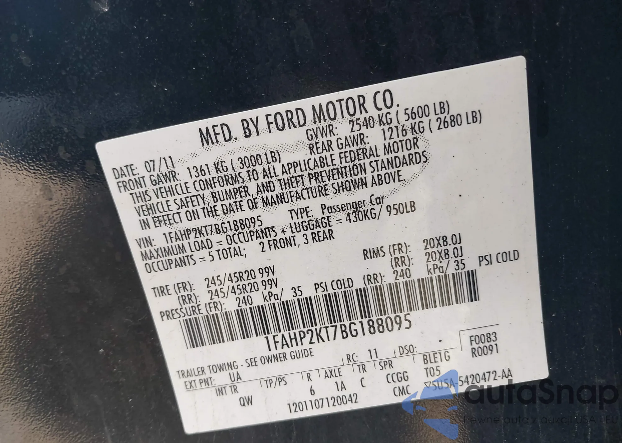 • VIN 1FAHP2KT7BG188095