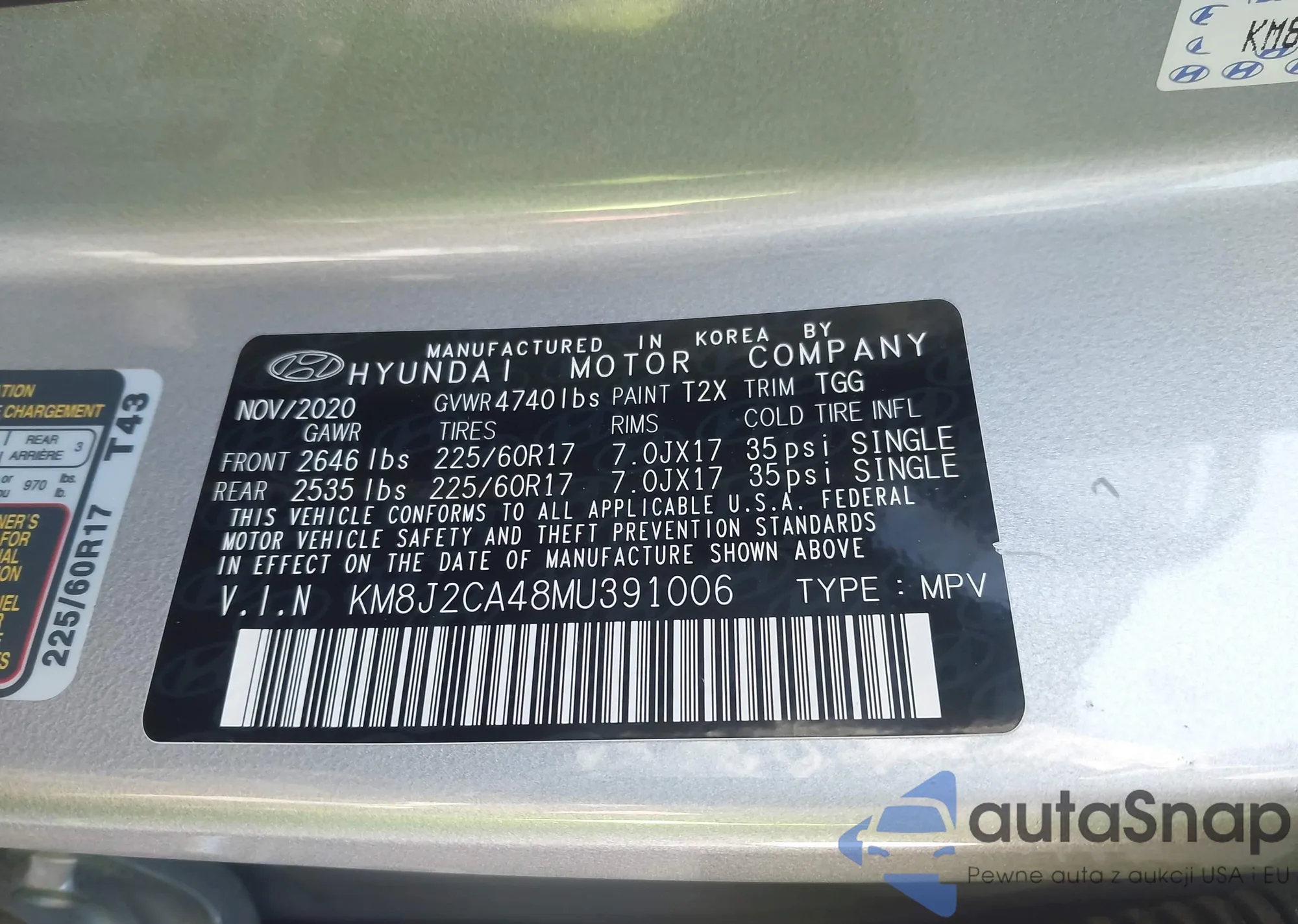 LOT: 42192809 VIN: KM8J2CA48MU391006