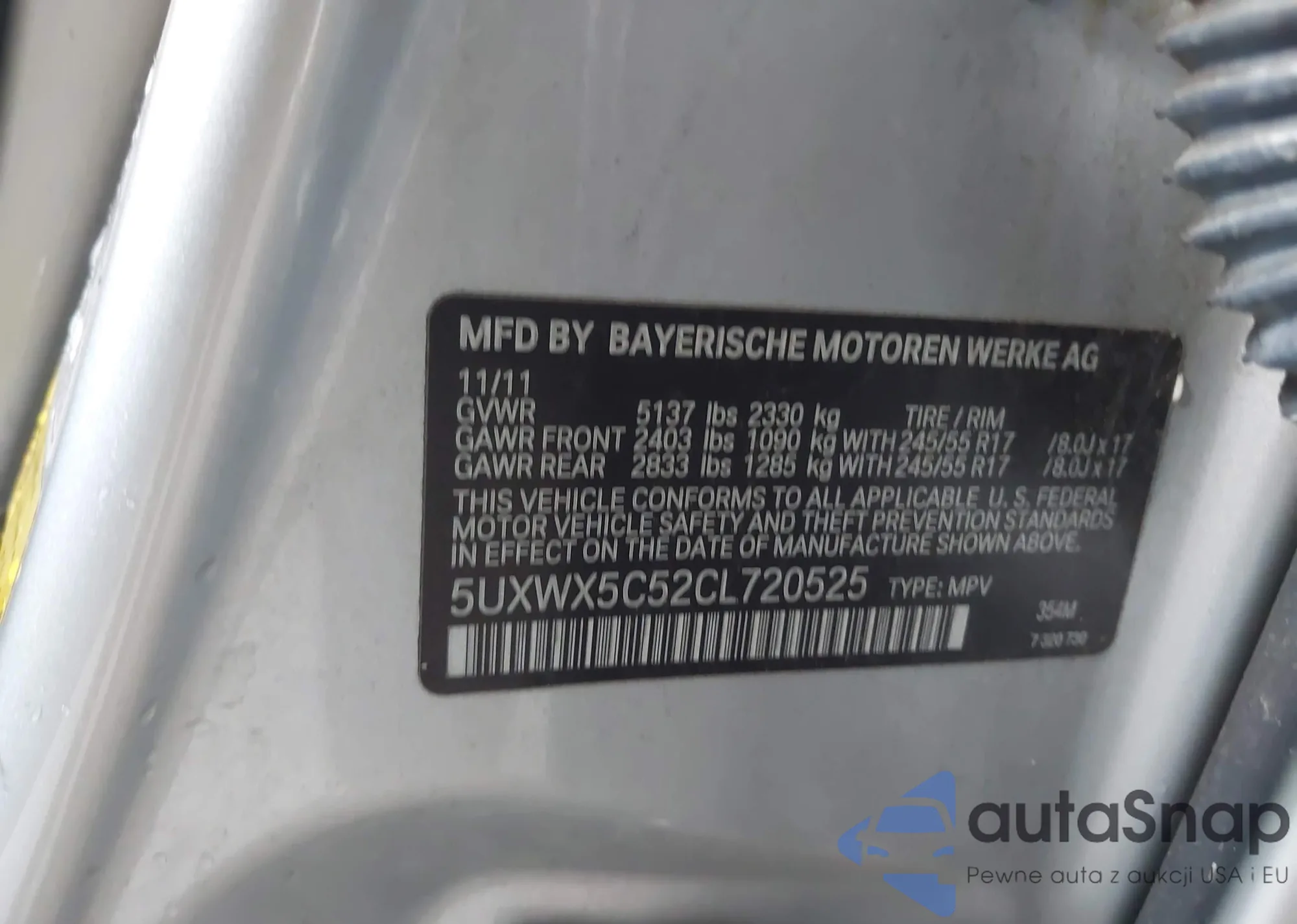 • VIN 5UXWX5C52CL720525