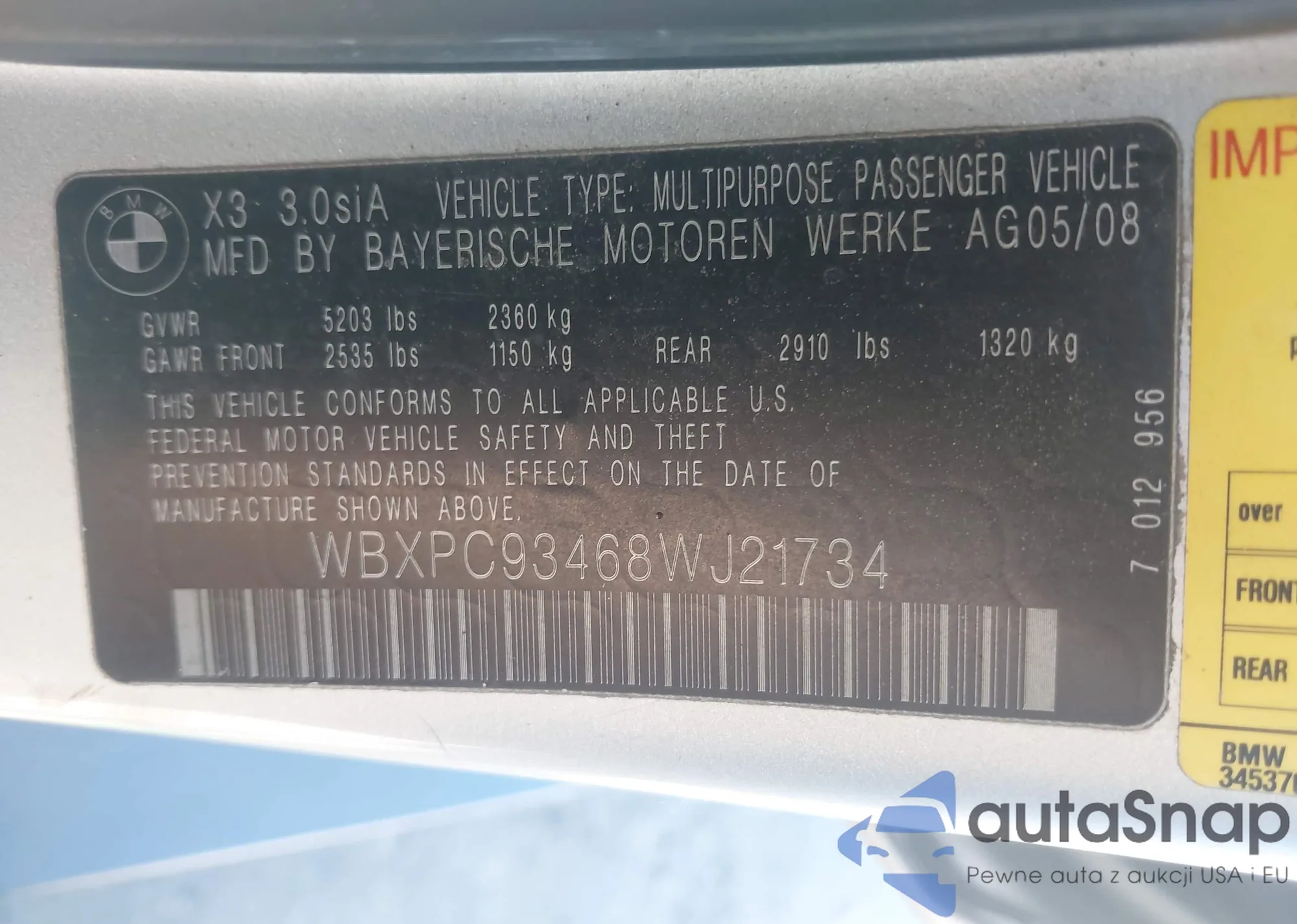 • VIN WMWRH33557TJ44349