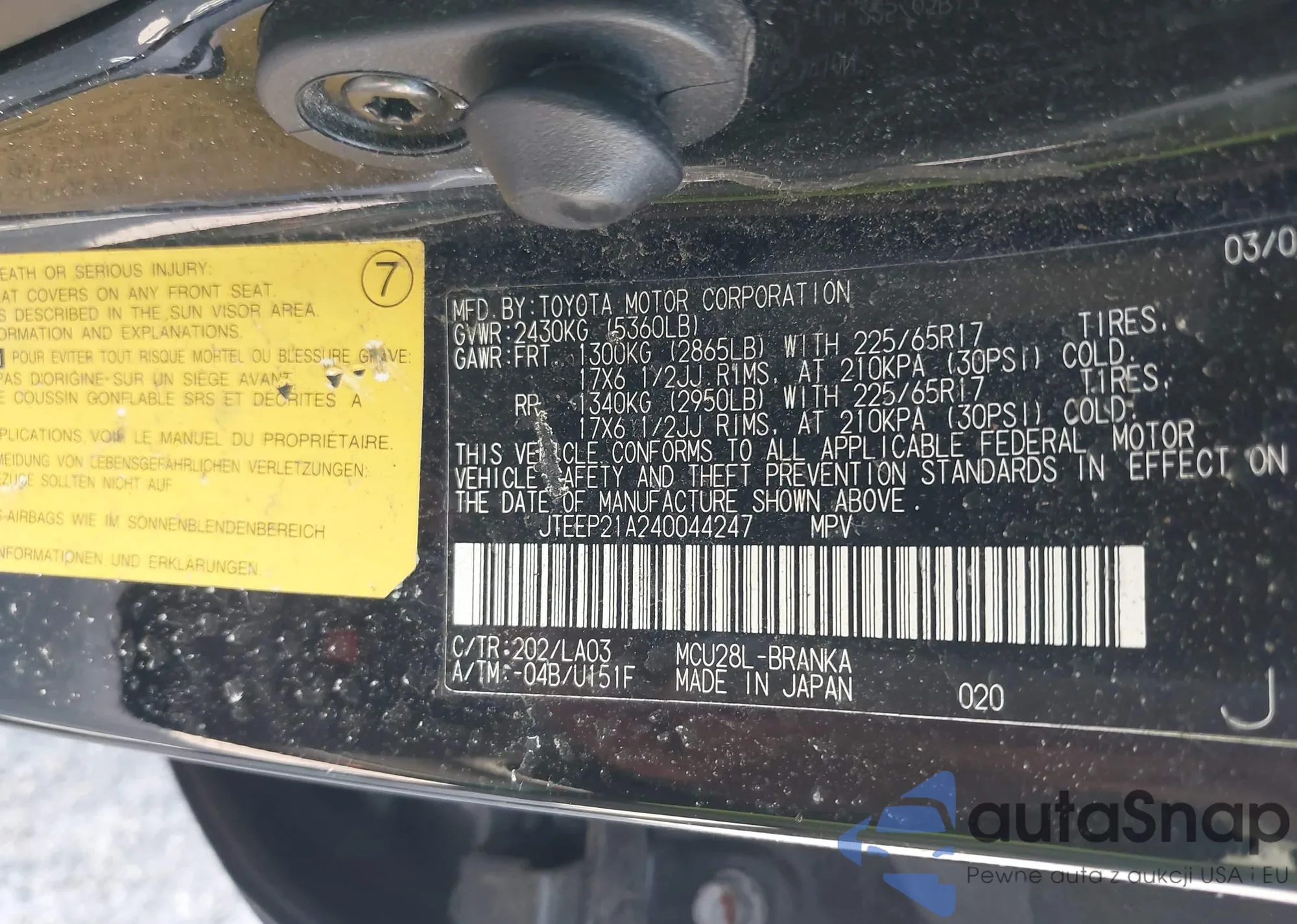 LOT: 42864961 VIN: JTEEP21A240044247