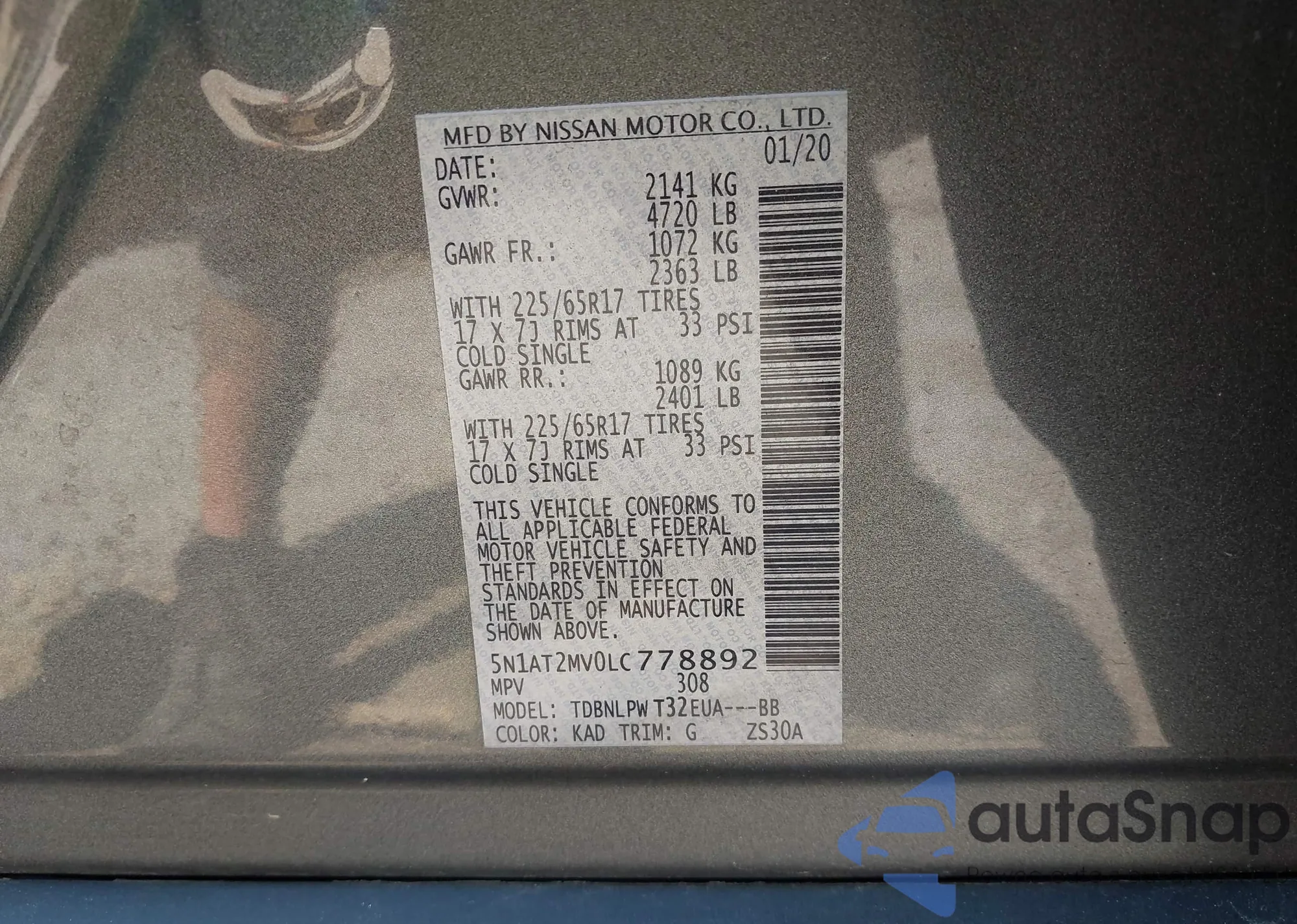 • VIN 5N1AT2MV0LC778892