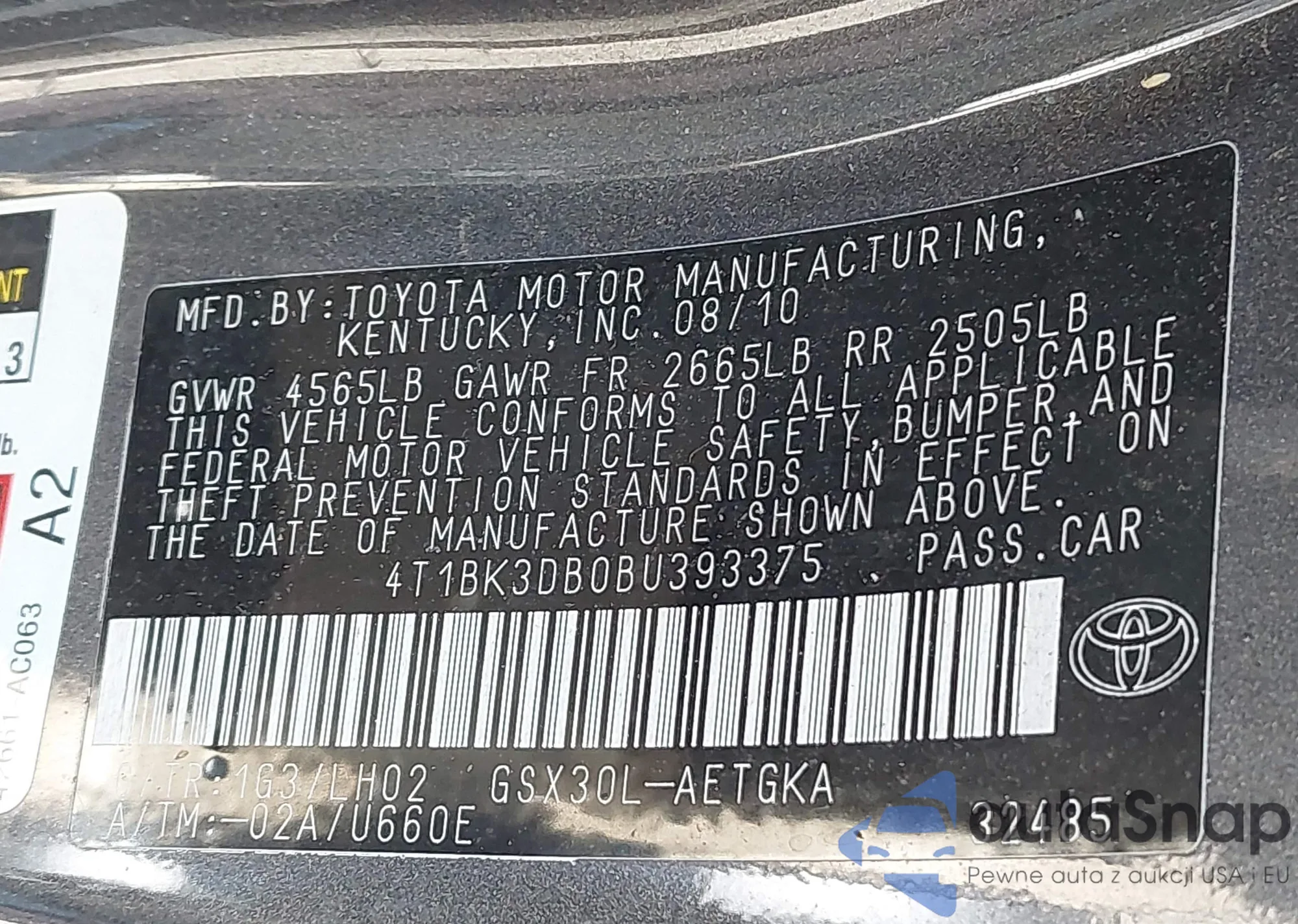 LOT: 42174624 VIN: 4T1BK3DB0BU393375