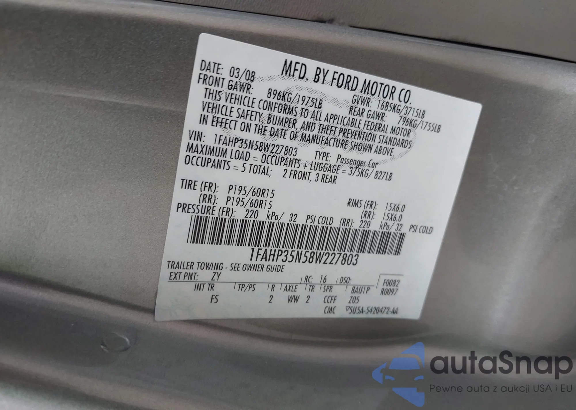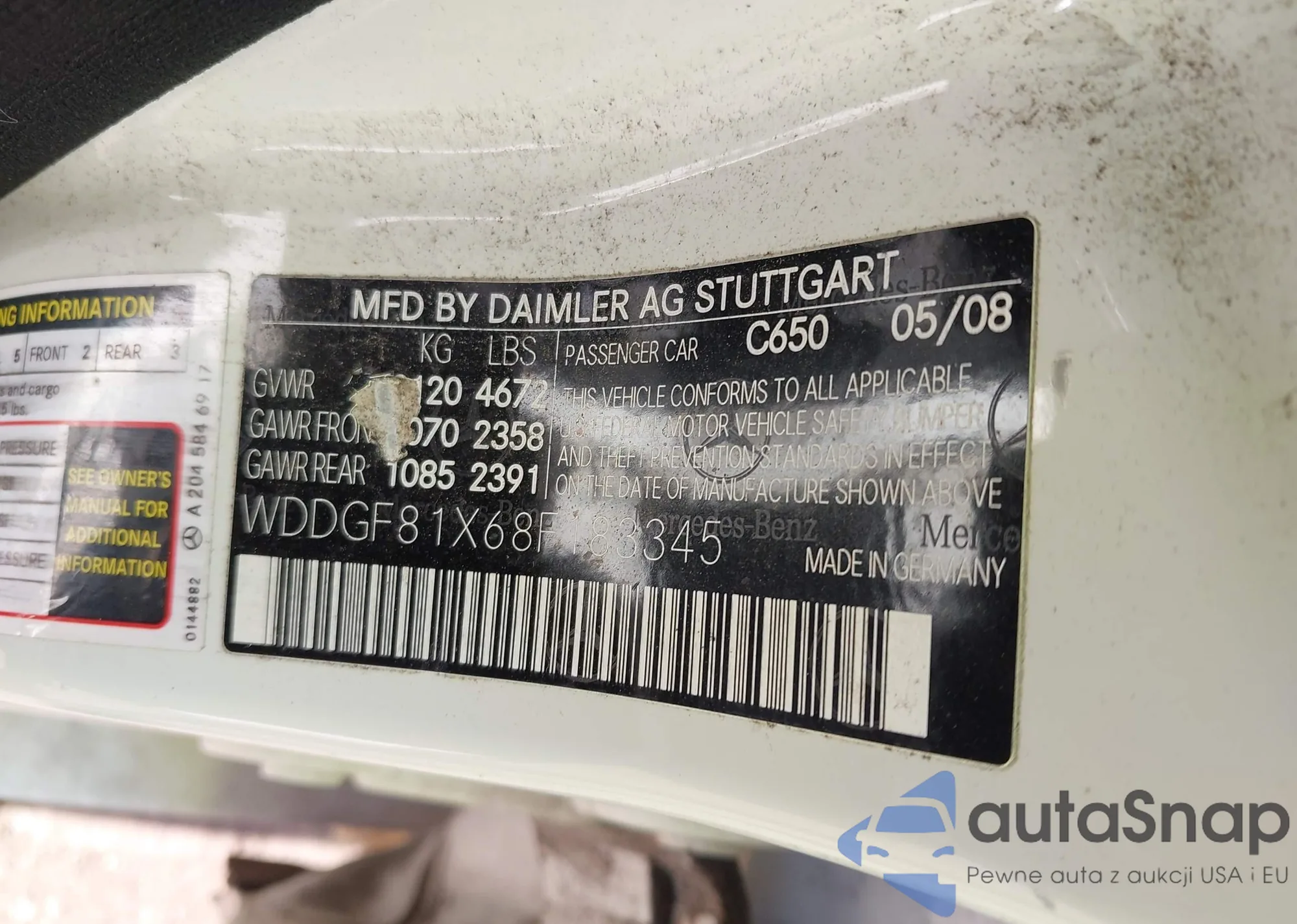 LOT: 42982923 VIN: WDDGF81X68F183345