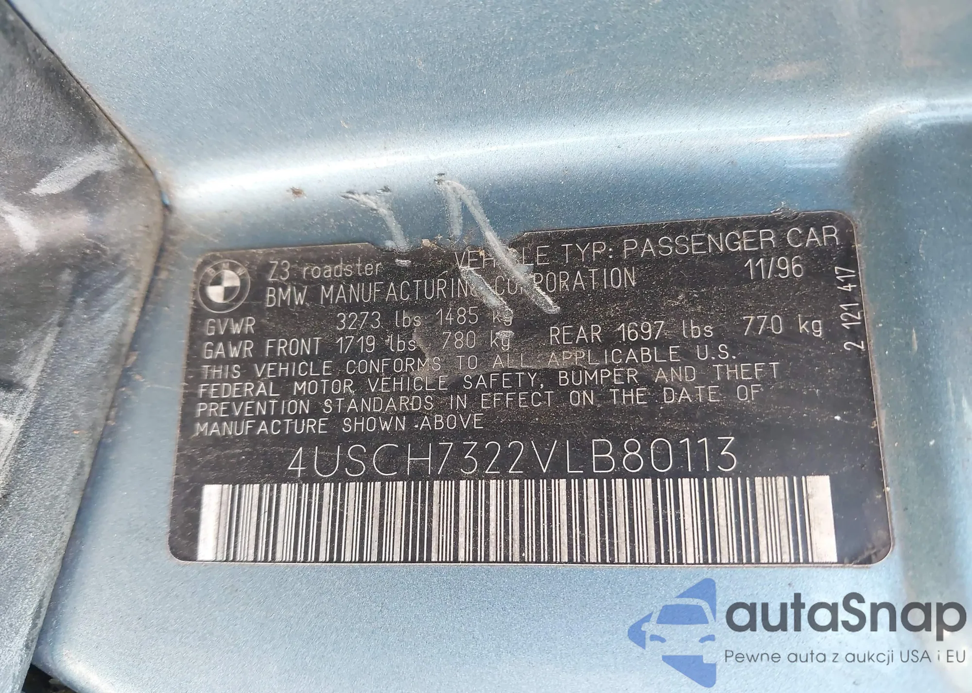 1997 BMW Z3 1.9 из США, поврежденный, VIN 4USCH7322VLB80113