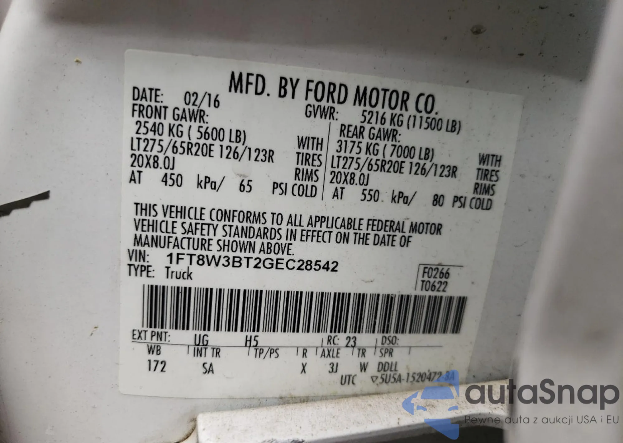 • VIN 1FT8W3BT2GEC28542