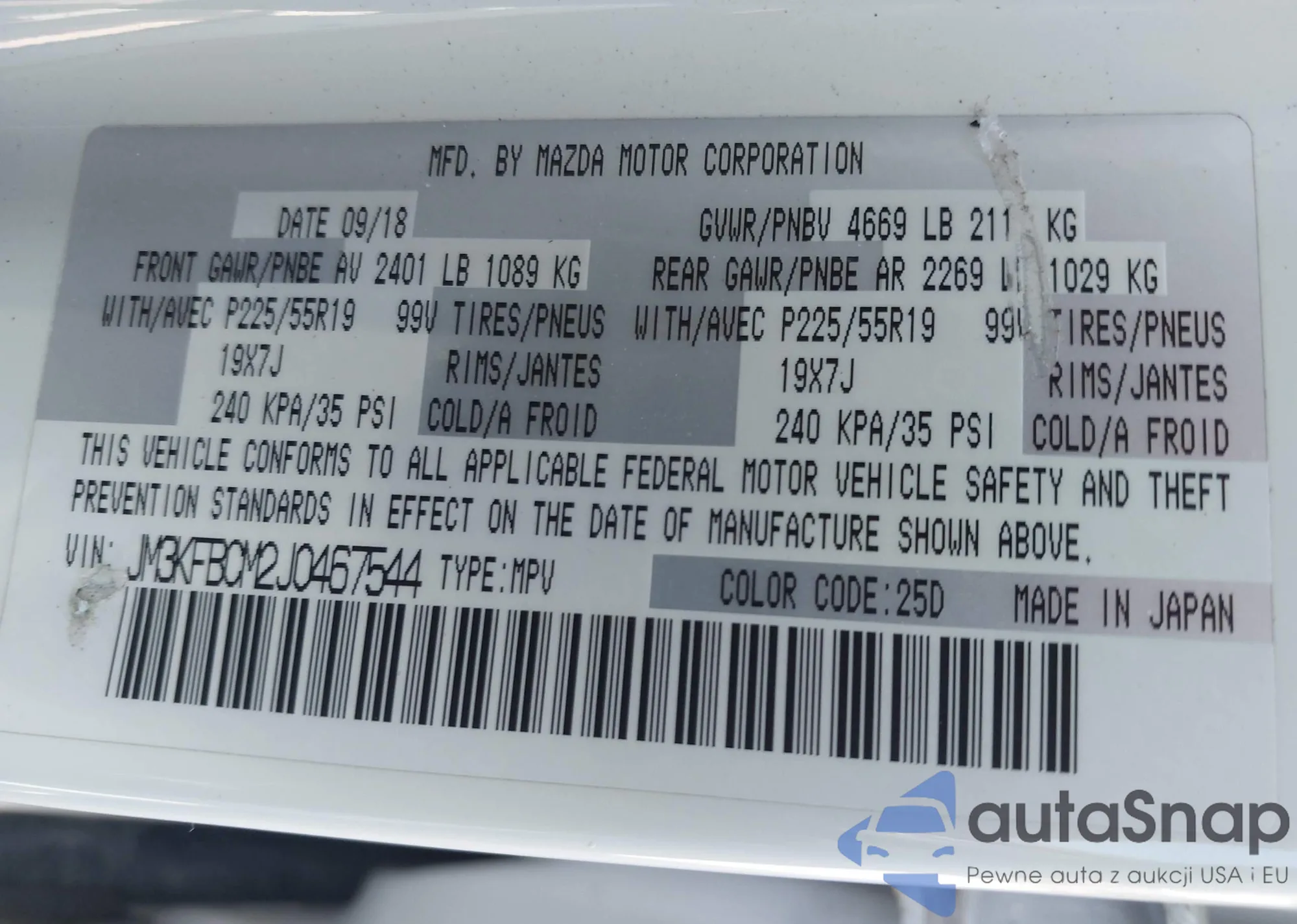 LOT: 41666980 VIN: JM3KFBCM2J0467544
