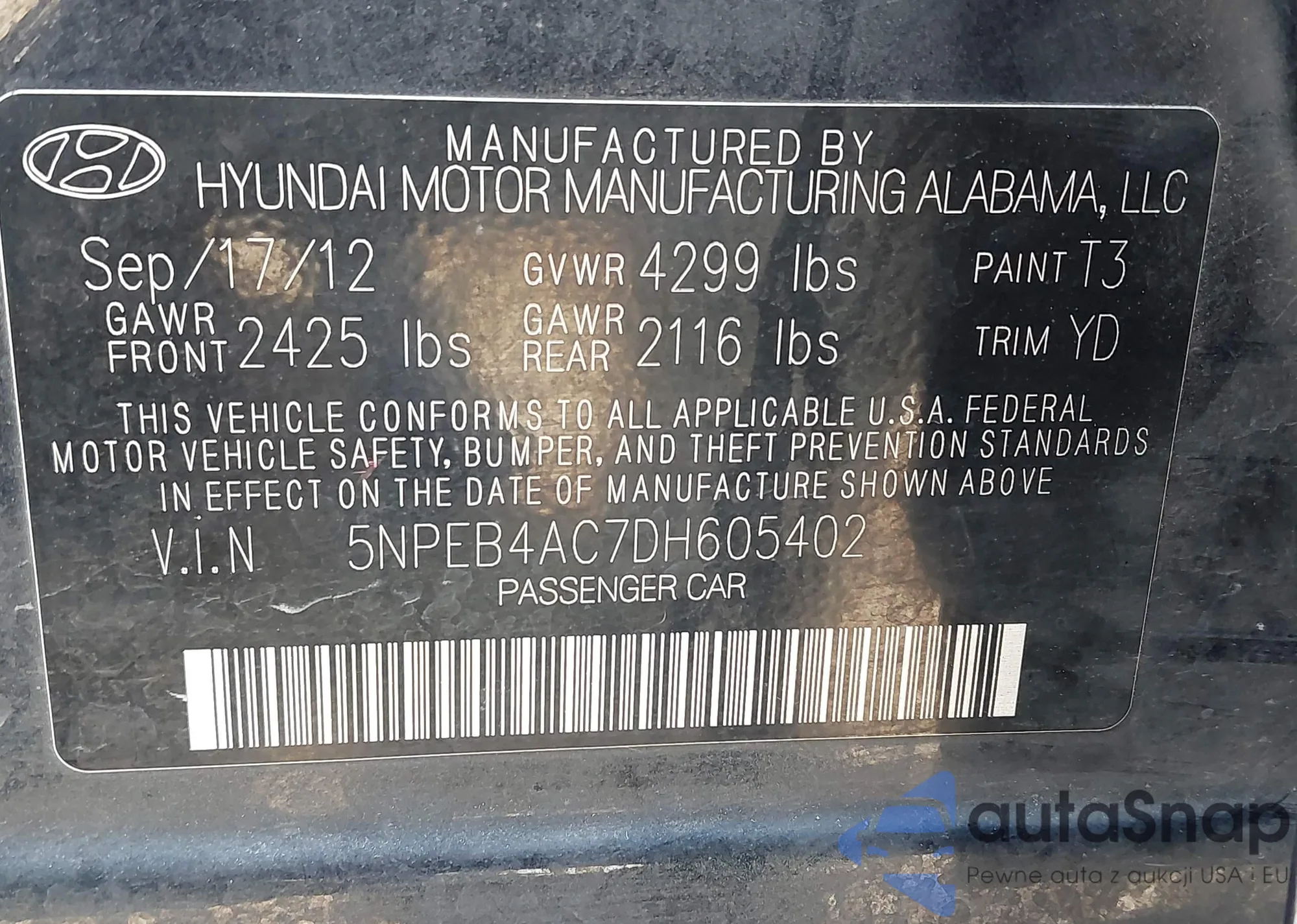 • VIN 5NPEB4AC7DH605402