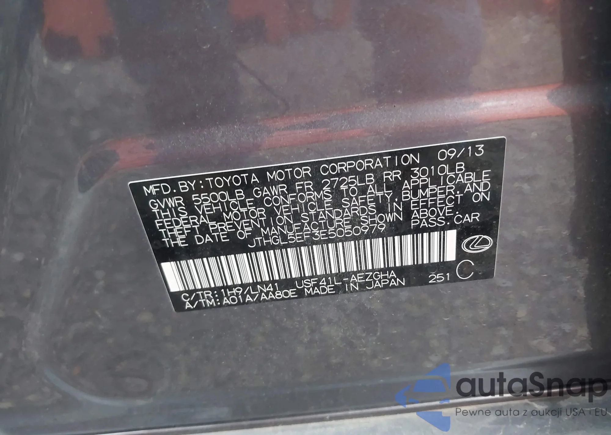 LOT: 42936031 VIN: JTHGL5EF3E5050979