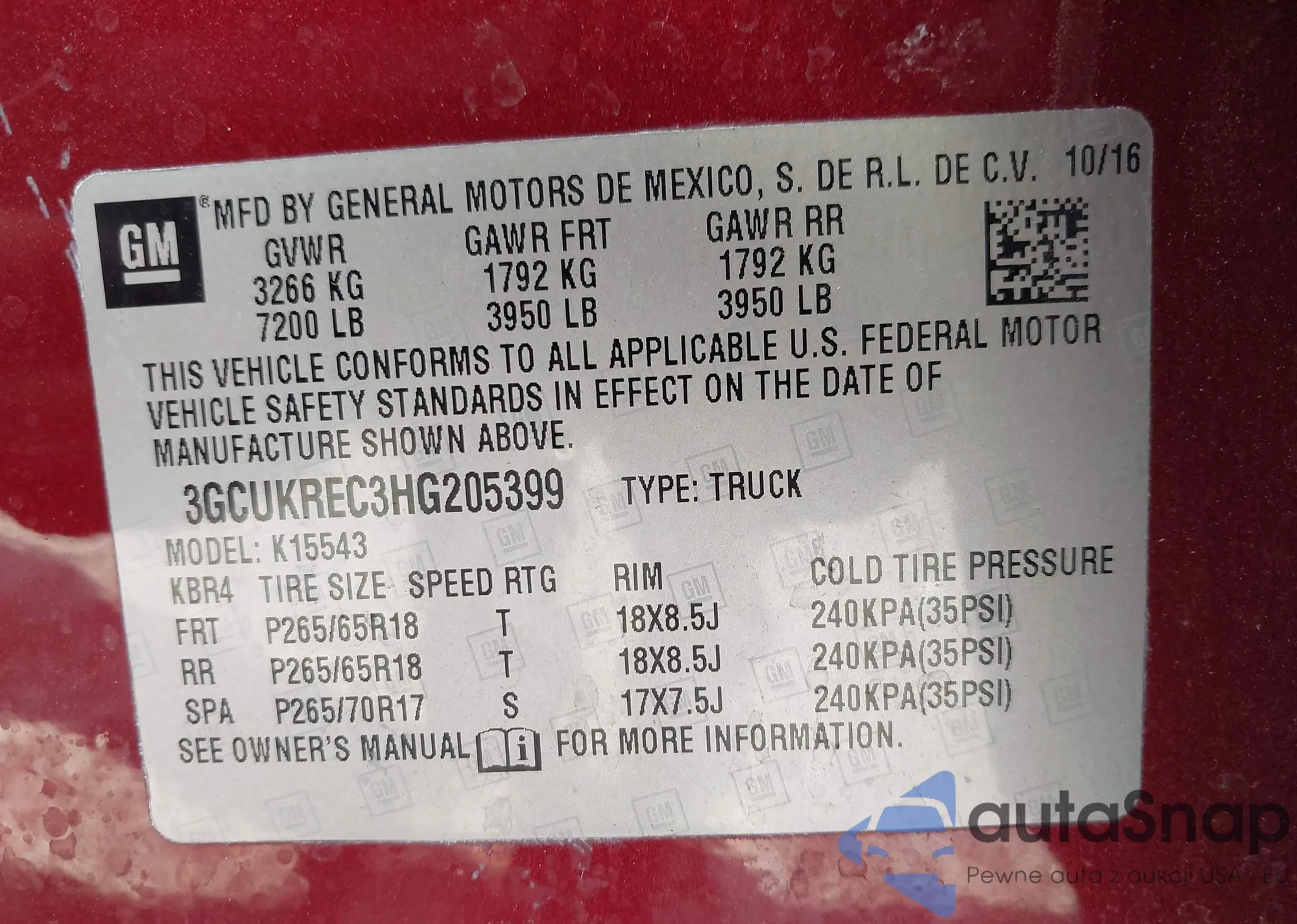 • VIN 3GCUKREC3HG205399