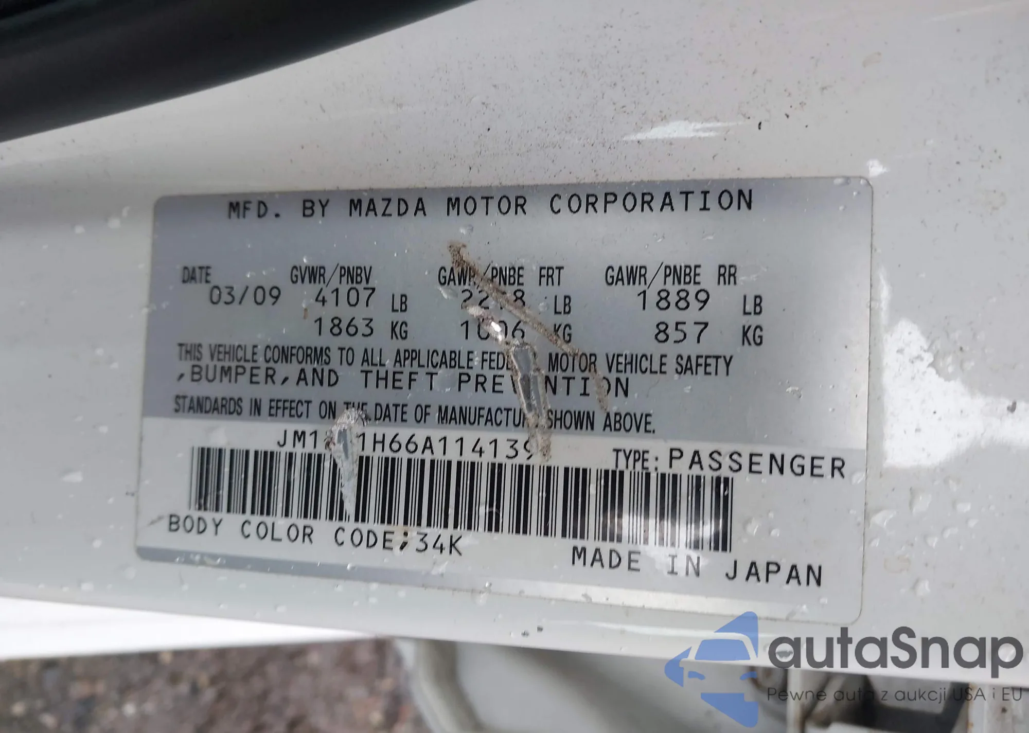 LOT: 43005885 VIN: JM1BL1H66A1141391