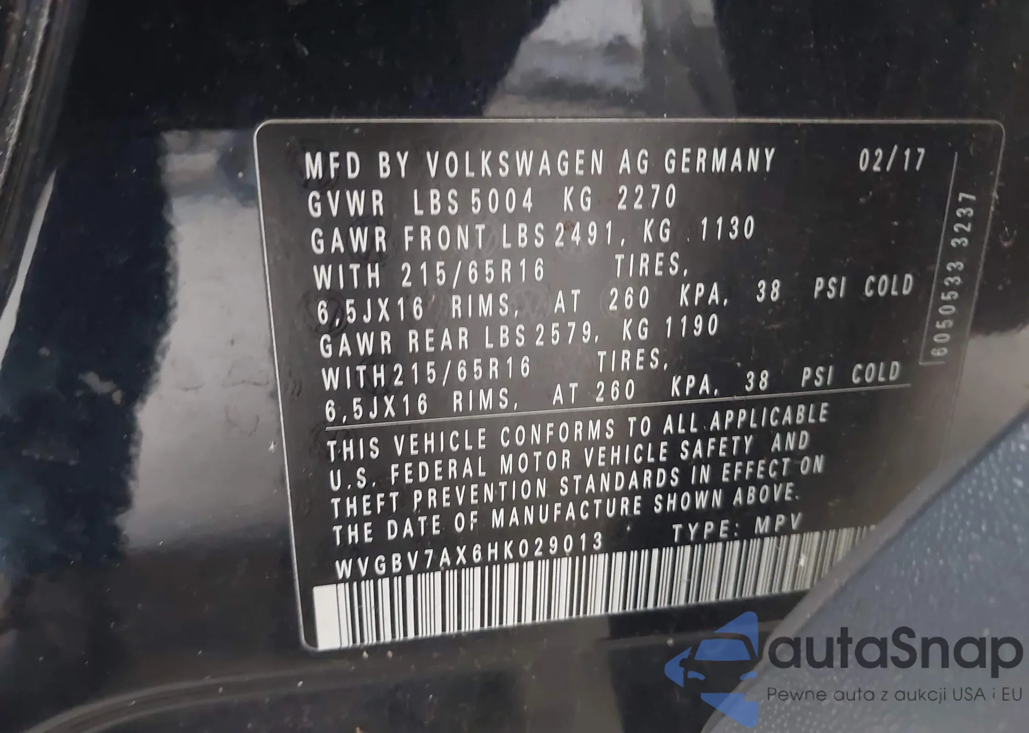 • VIN WVGBV7AX6HK029013