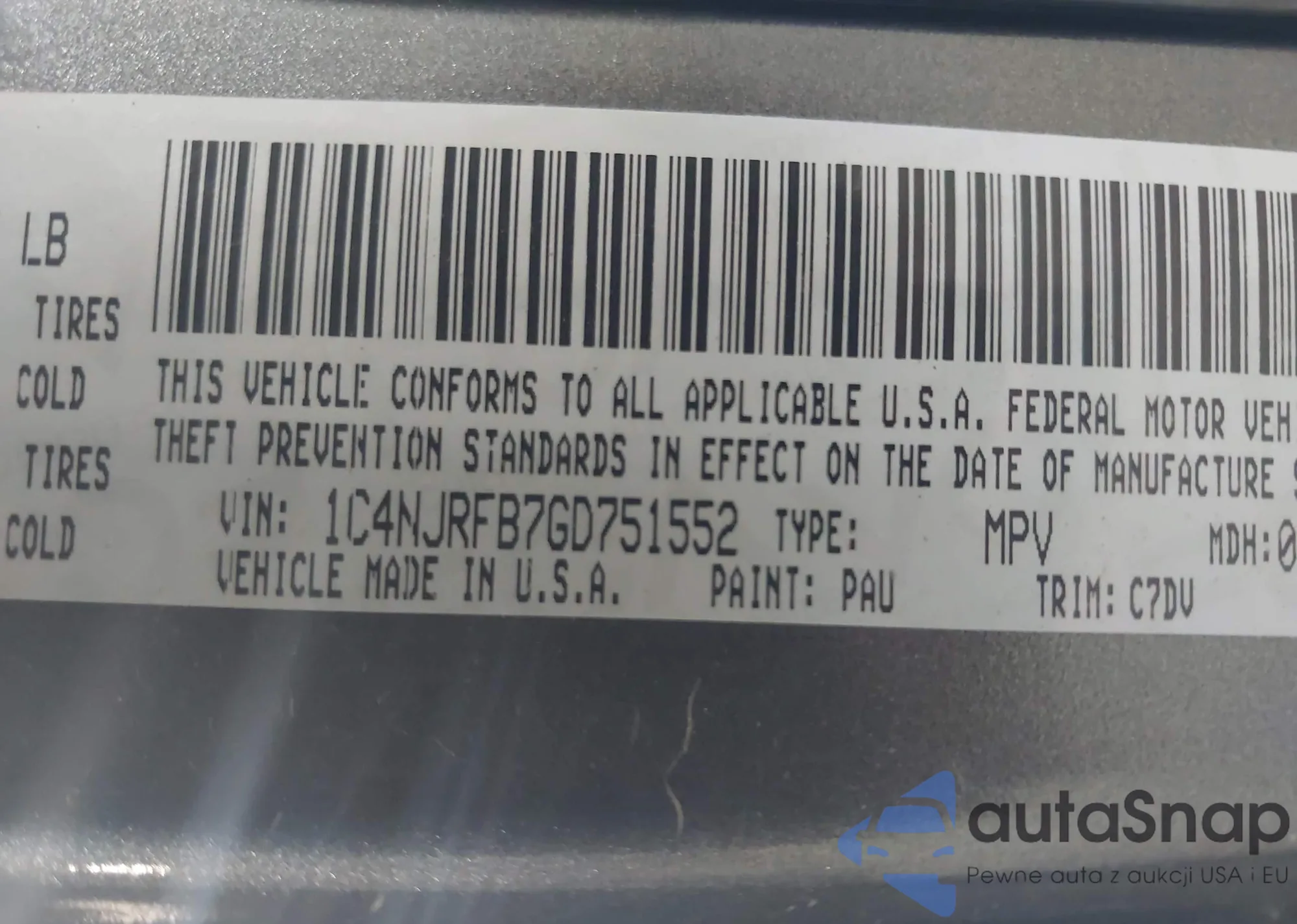 LOT: 42974925 VIN: 1C4NJRFB7GD751552