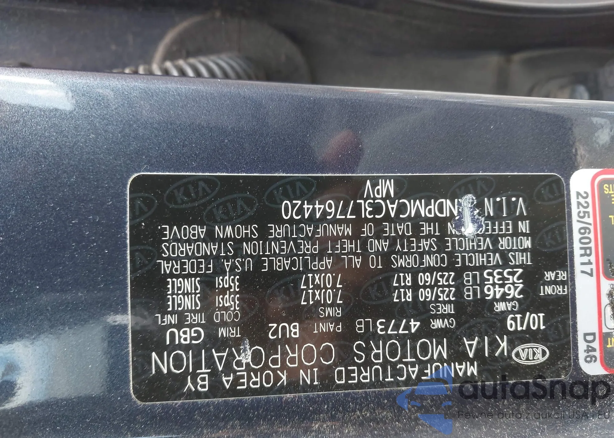 • VIN KNDPMCAC3L7764420