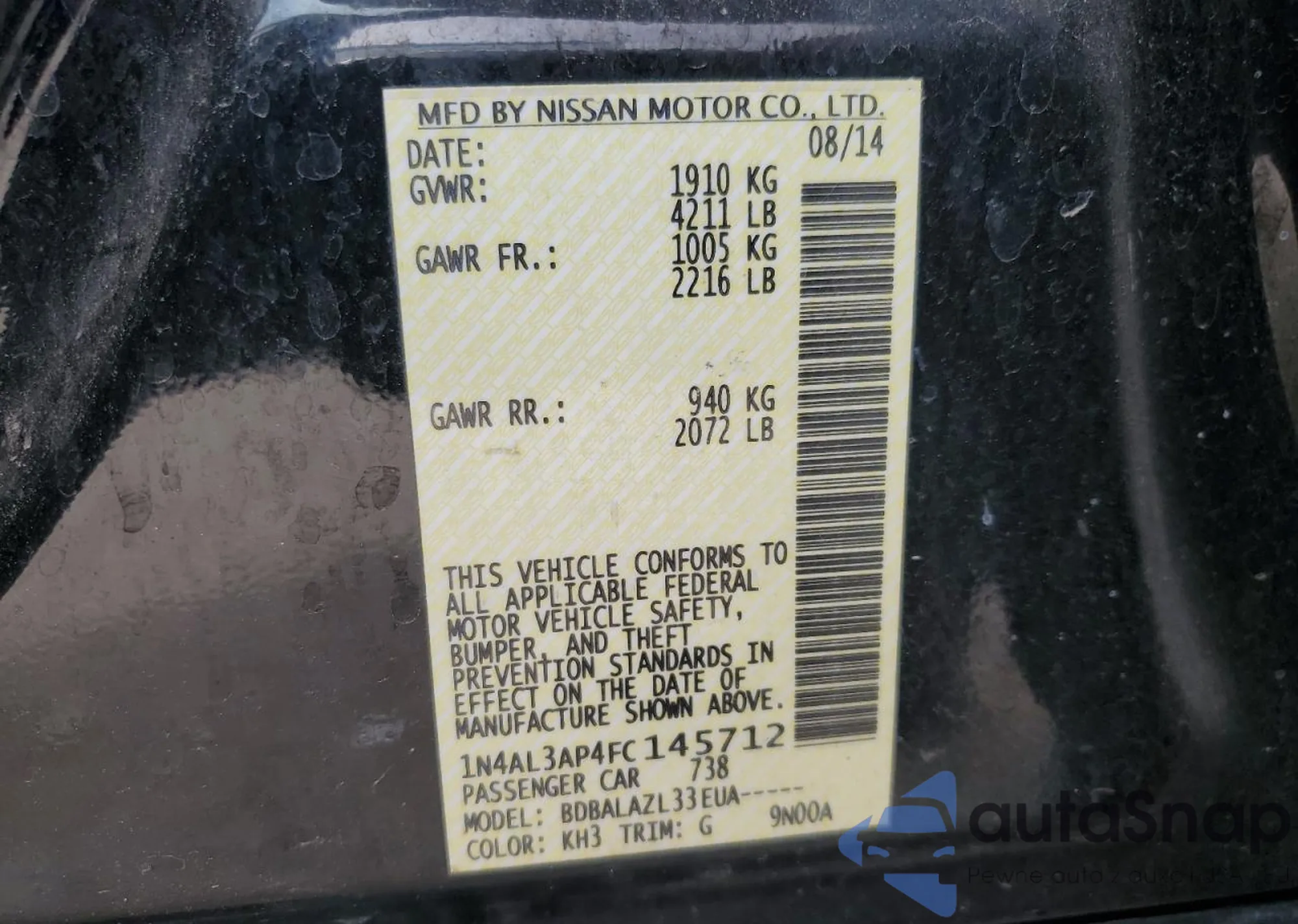 LOT: 60151535 VIN: 1N4AL3AP4FC145712