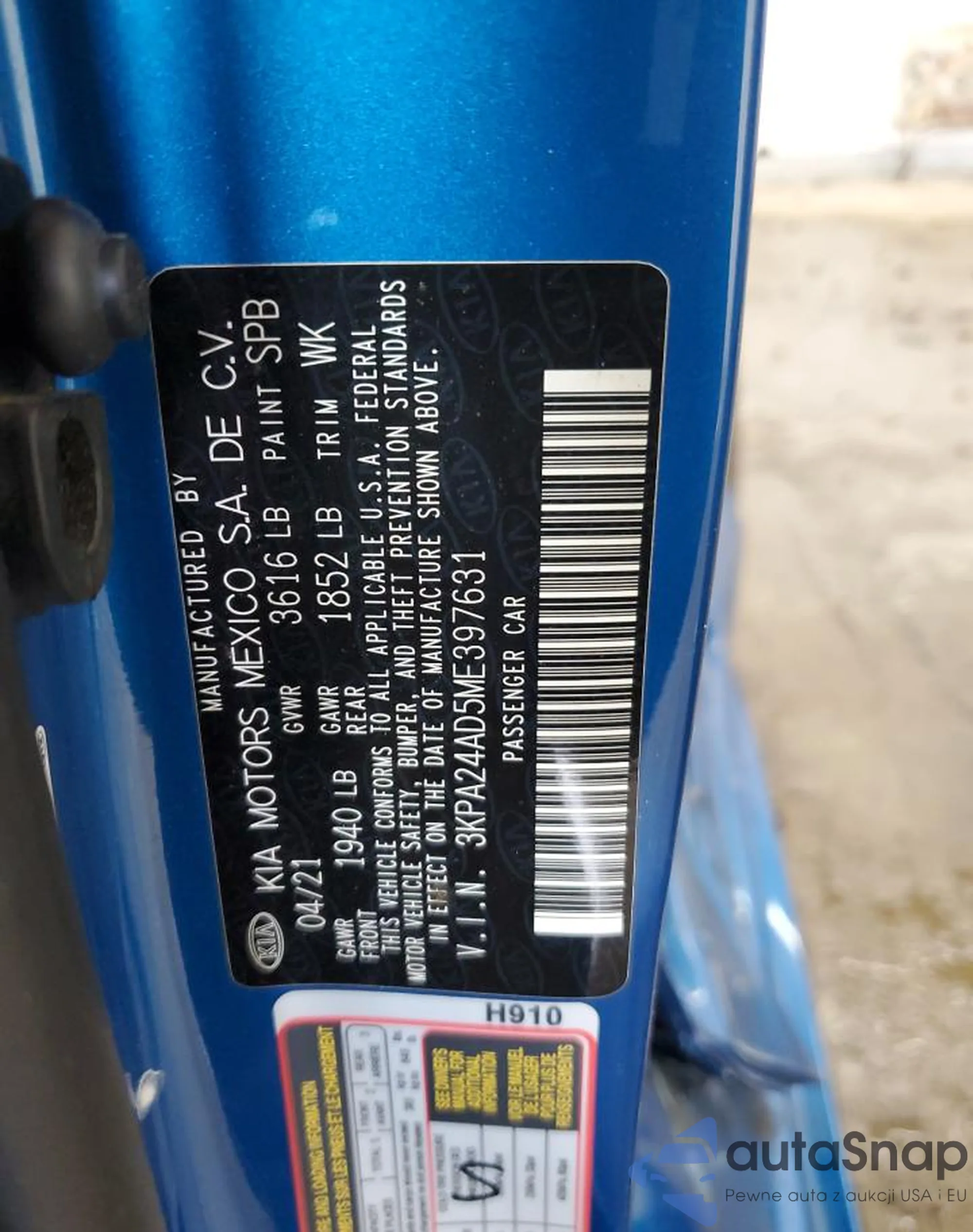 • VIN 3KPA24AD5ME397631
