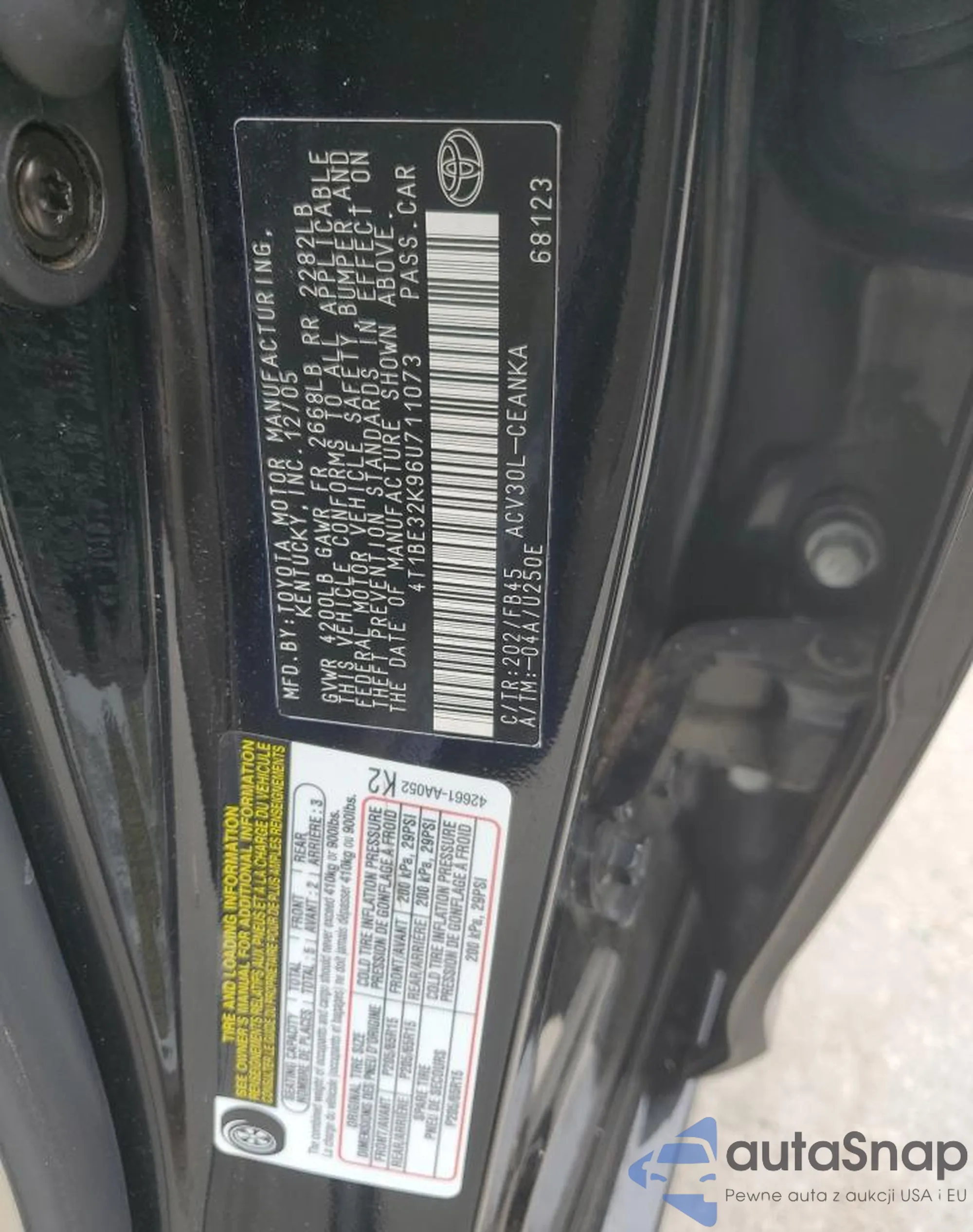 • VIN 4T1BE32K96U711073