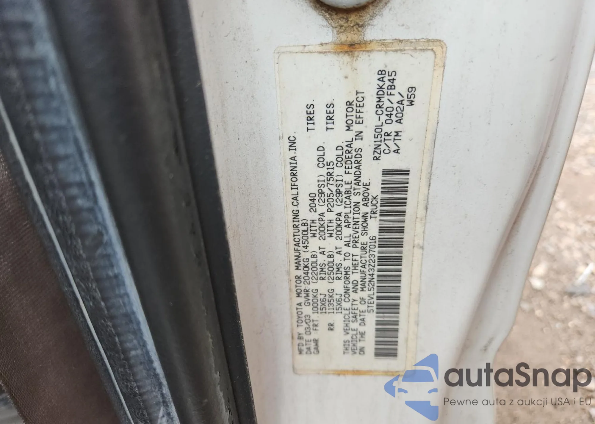 • VIN 5TEVL52N43Z237016