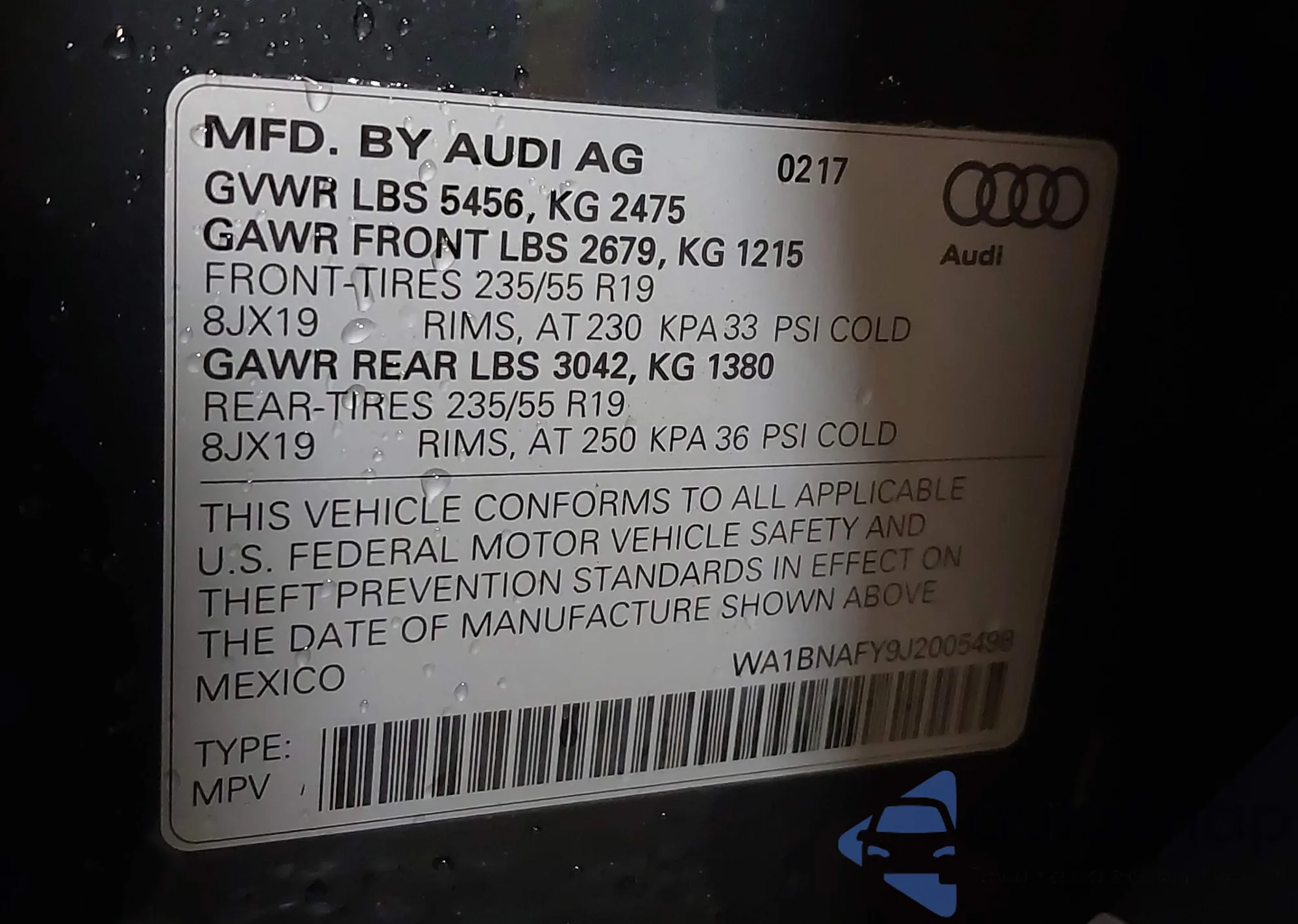 LOT: 42417936 VIN: WA1BNAFY9J2005498