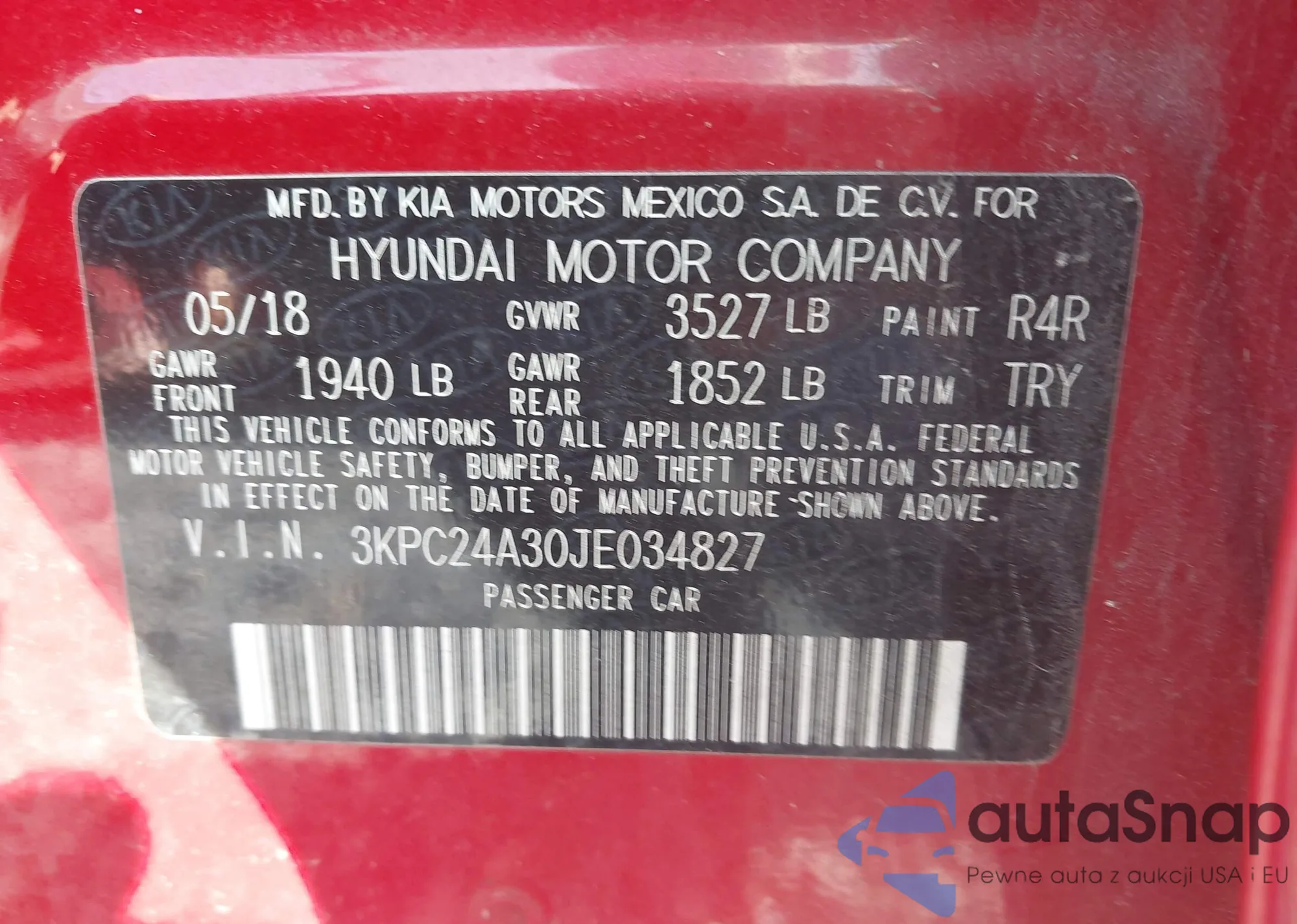 LOT: 42852488 VIN: 4T1B61HK0JU099427