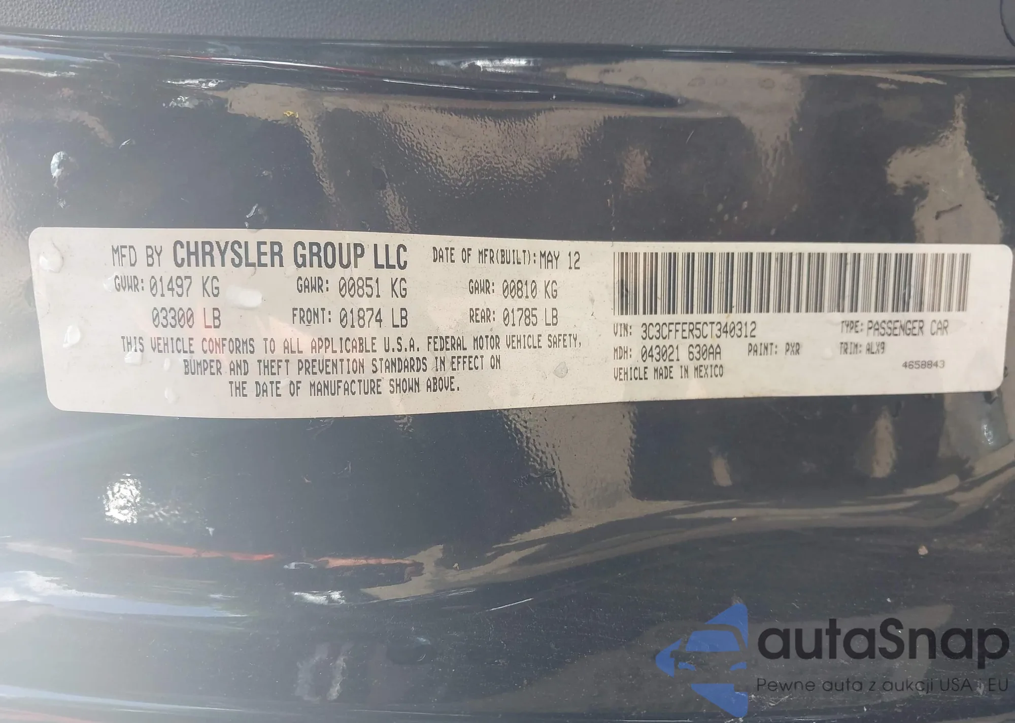 • VIN 3C3CFFER5CT340312