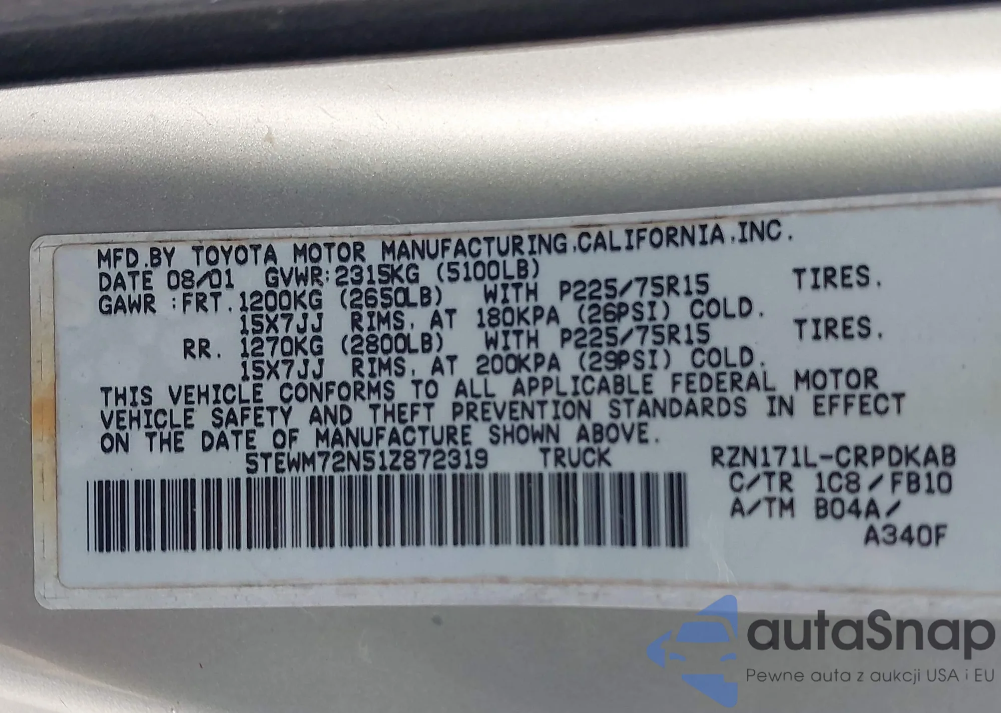 • VIN 5TEWM72N51Z872319