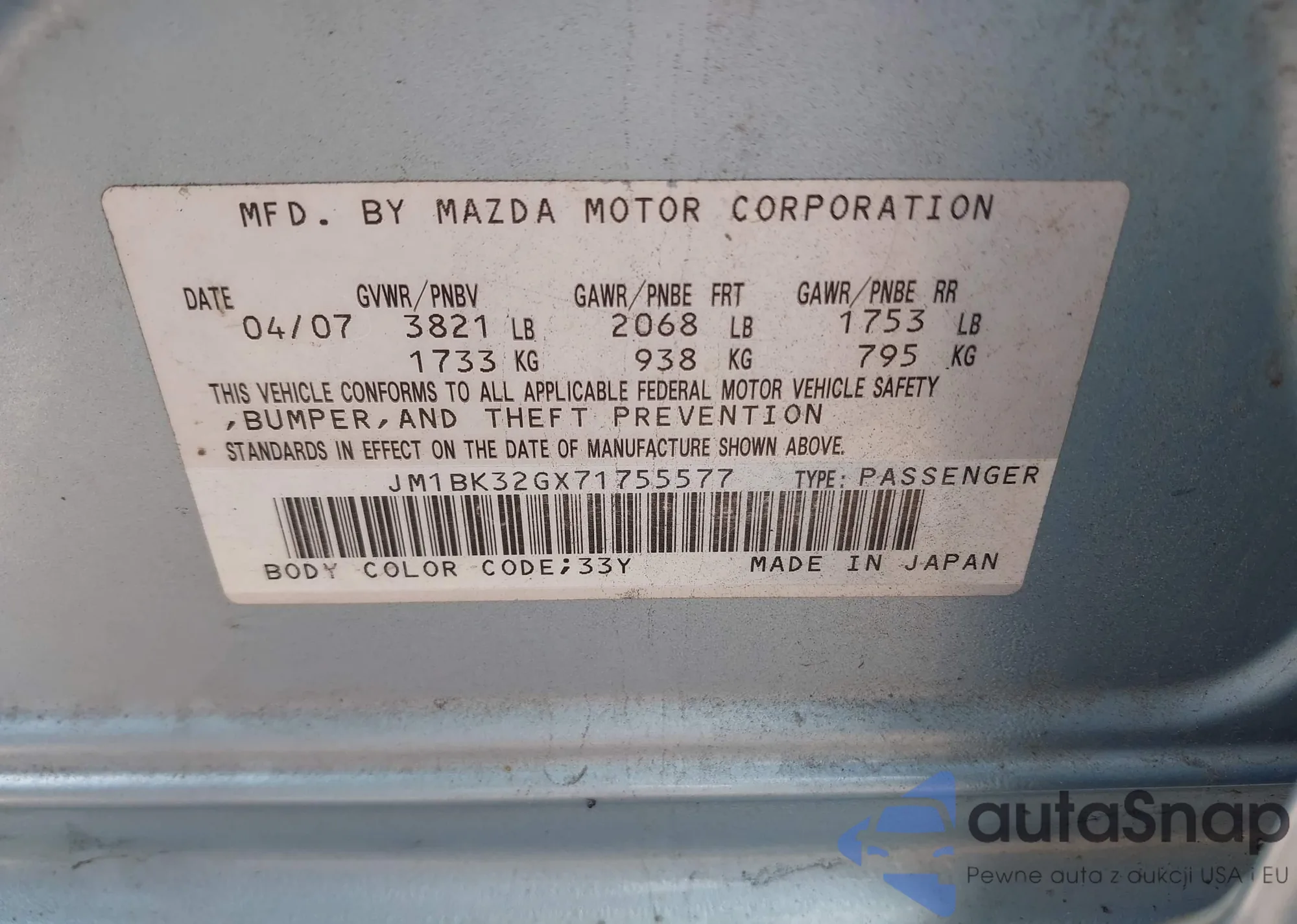 LOT: 42806098 VIN: JM1BK32GX71755577