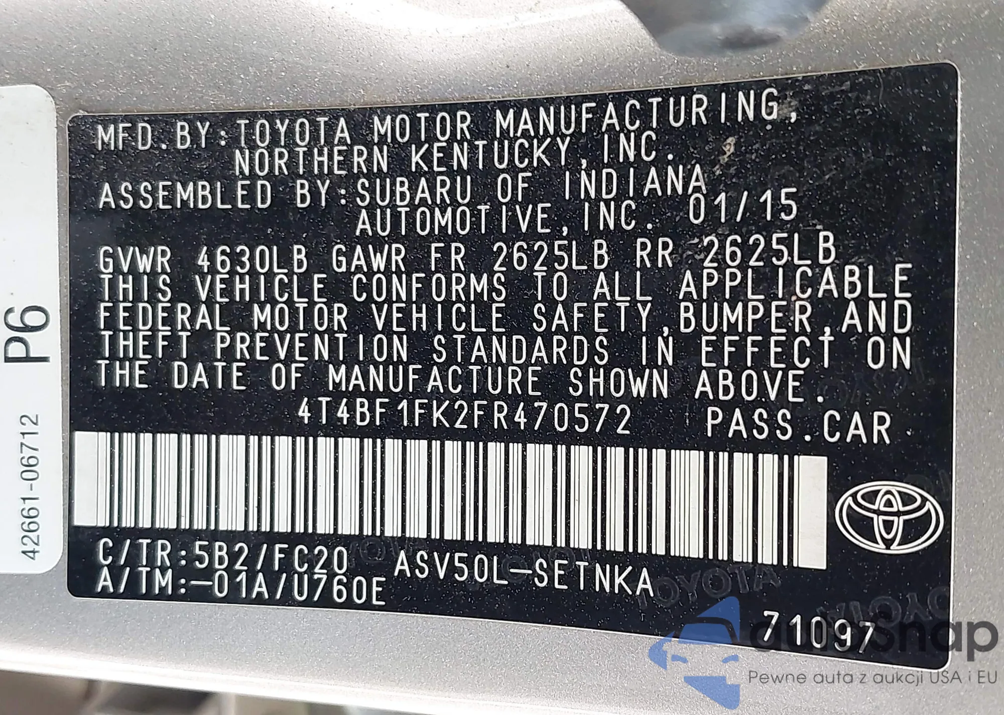 LOT: 42987648 VIN: 4T4BF1FK2FR470572