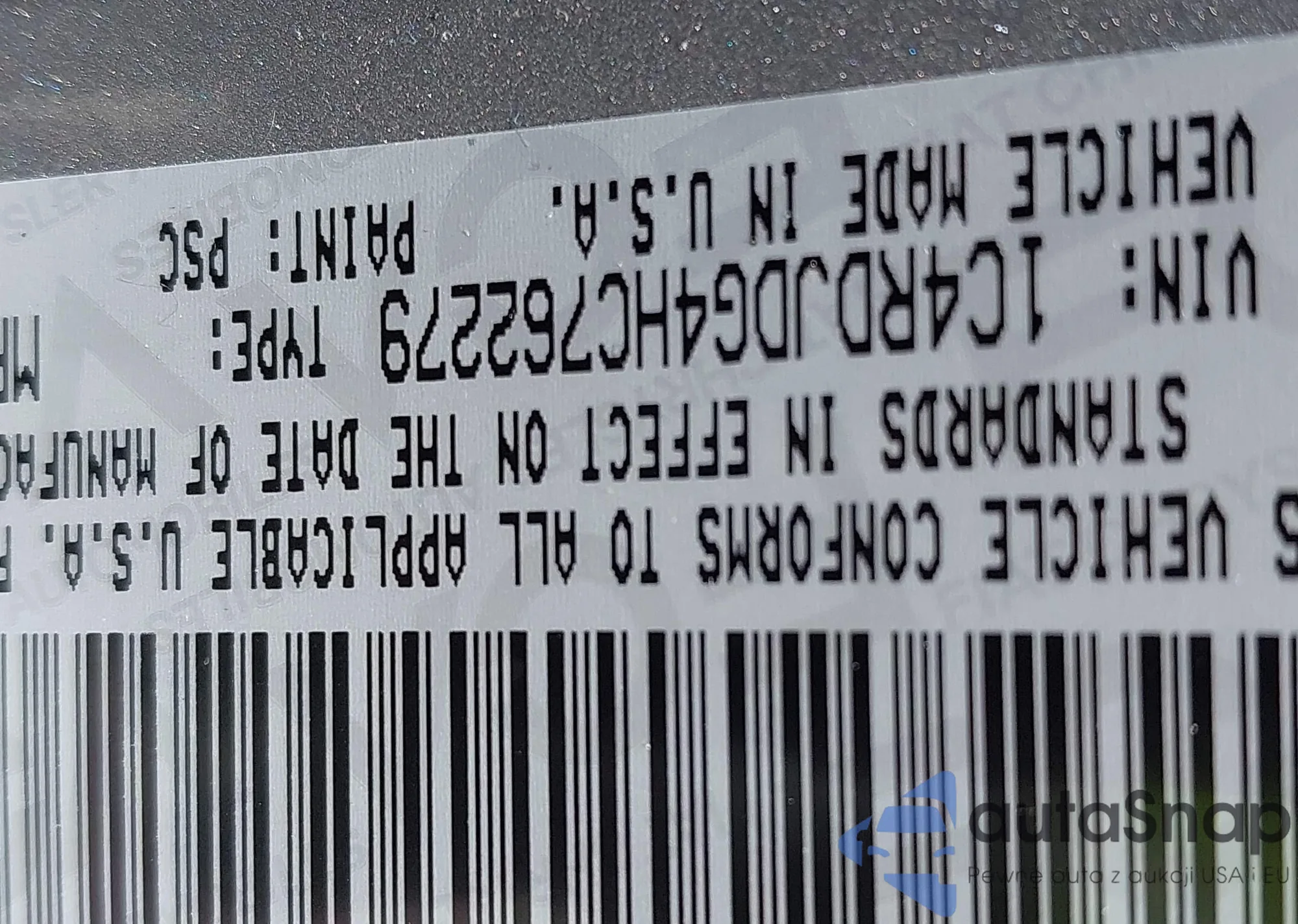 • VIN 1C4RDJDG4HC762279