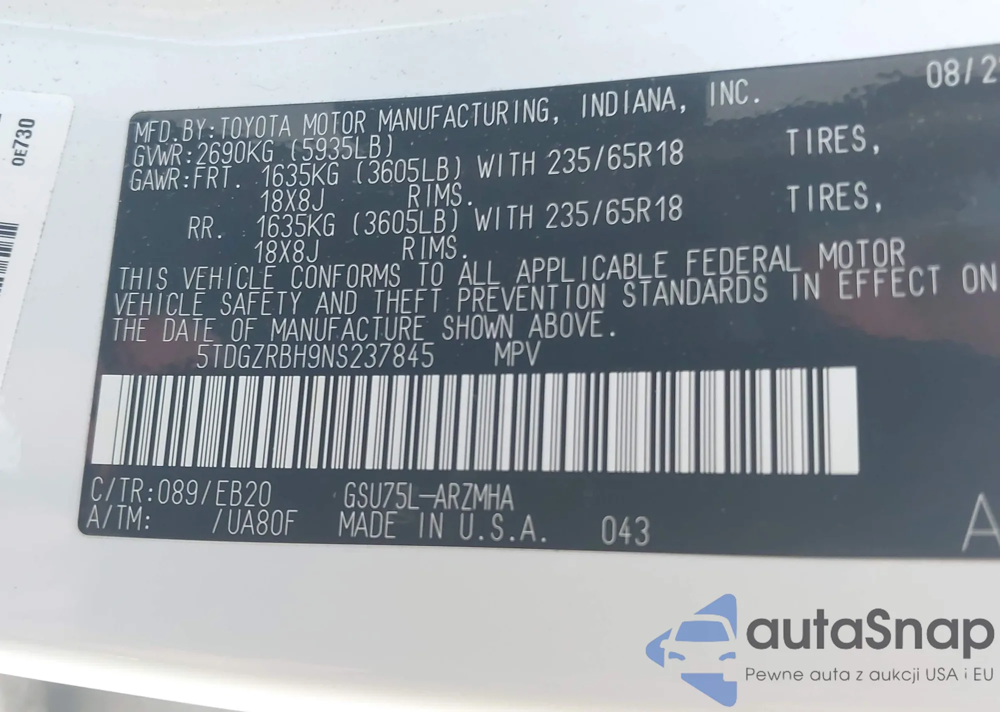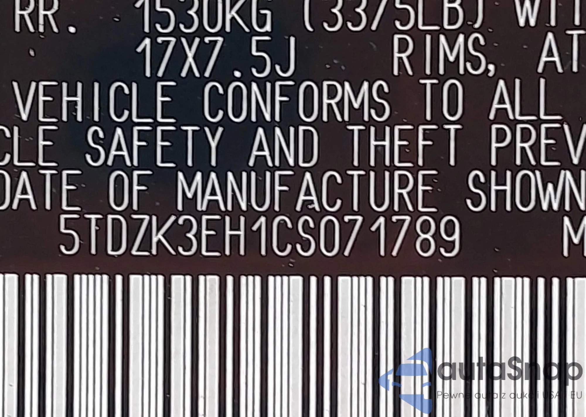 • VIN 58ABK1GG5JU080499