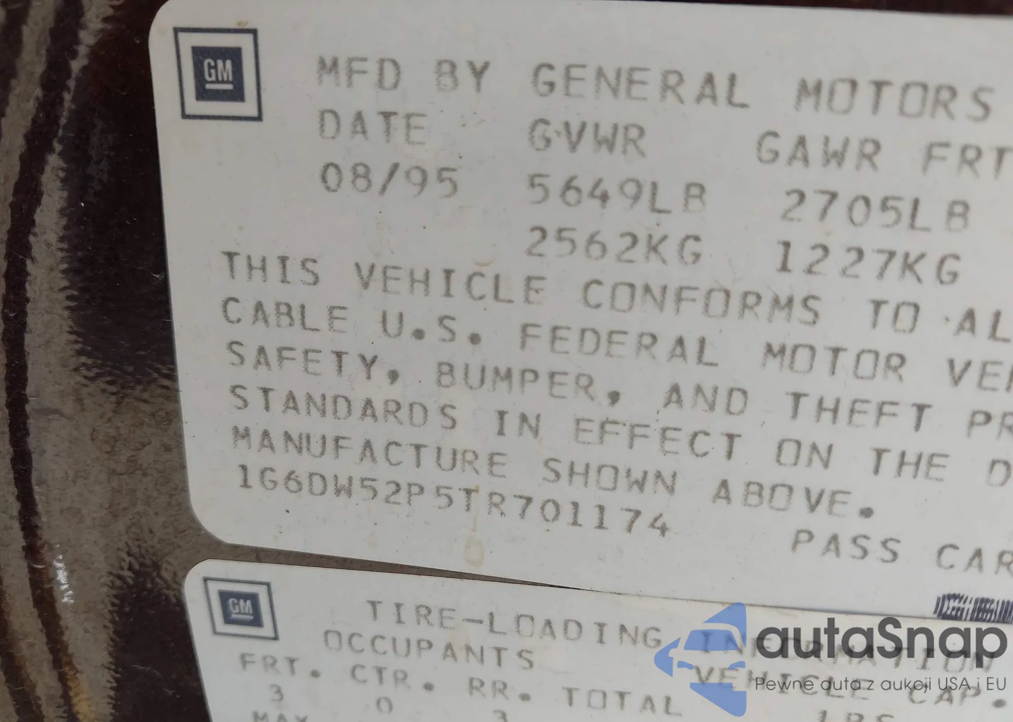 • VIN 1G6DW52P5TR701174