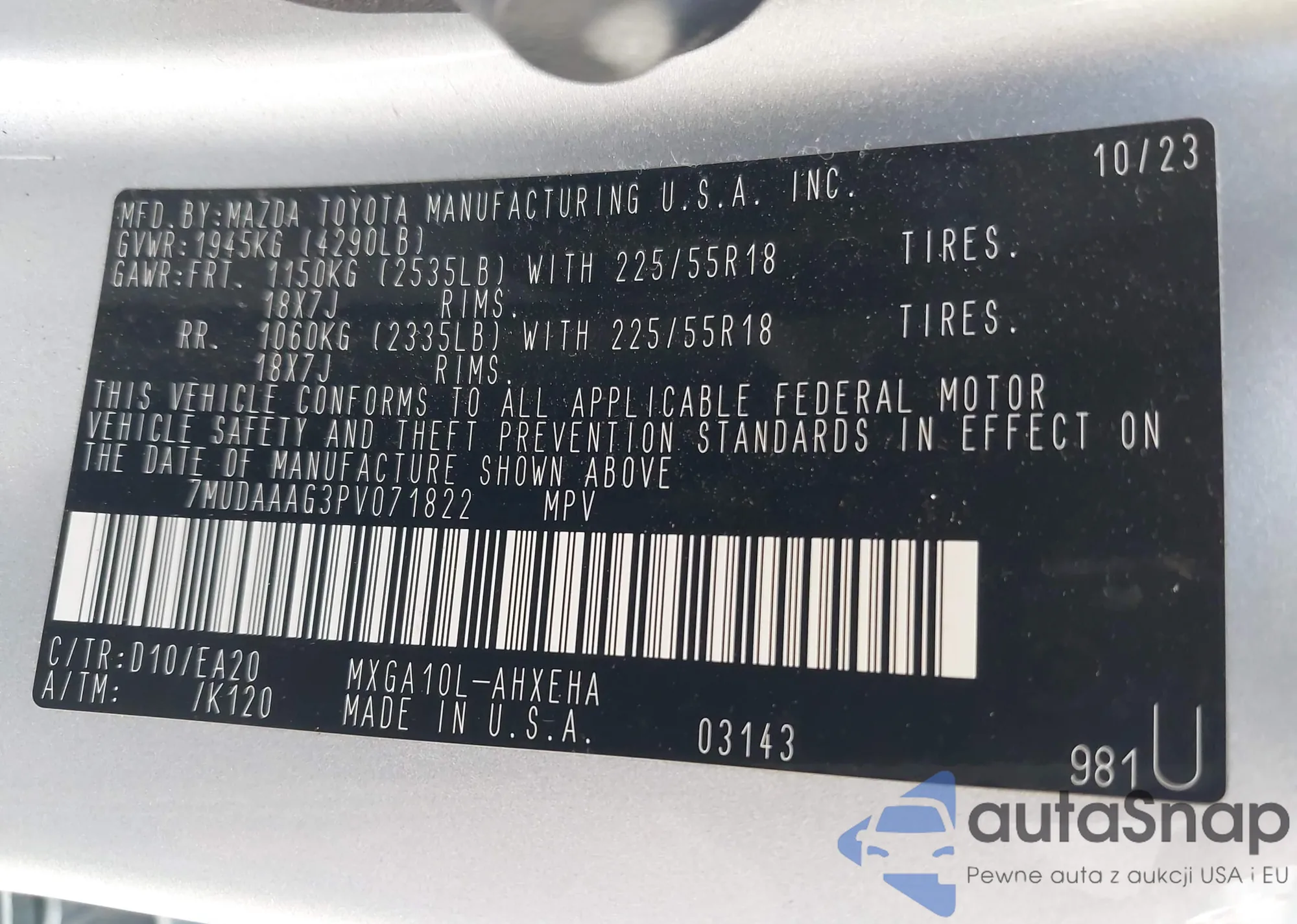 LOT: 42974575 VIN: WP1AB2A59HLB20831