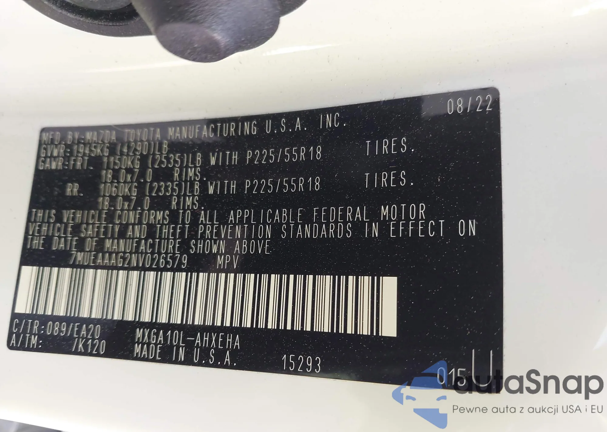 LOT: 41888361 VIN: 7MUEAAAG2NV026579