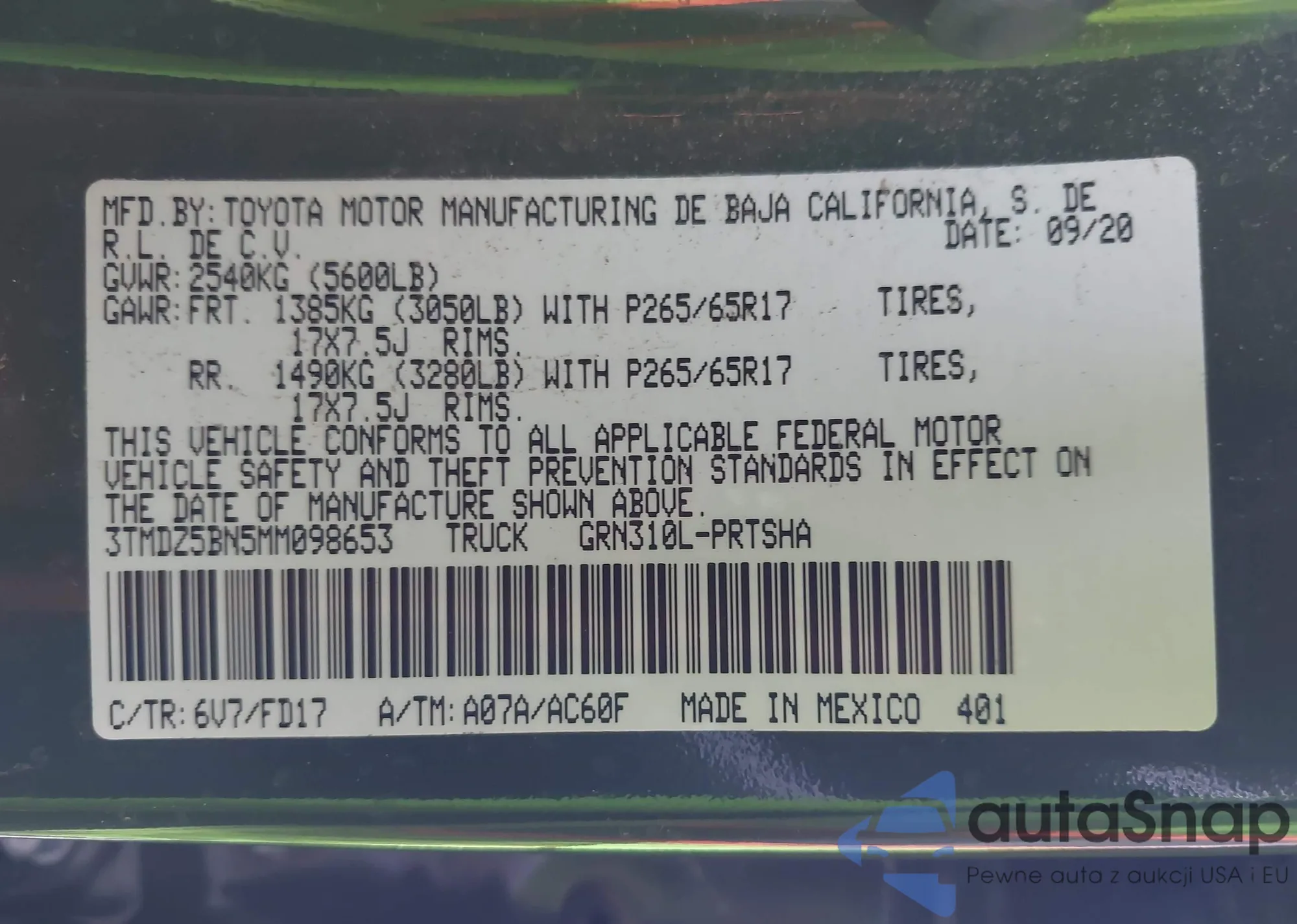 • VIN 3TMDZ5BN5MM098653