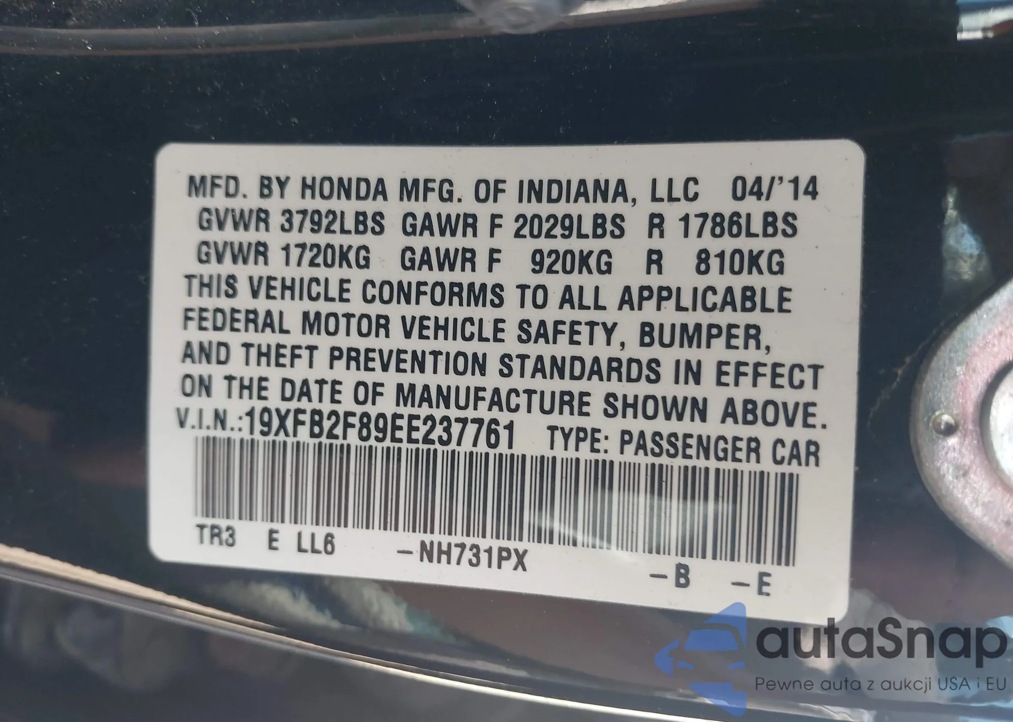 LOT: 42948345 VIN: 1NXBR30E66Z761219